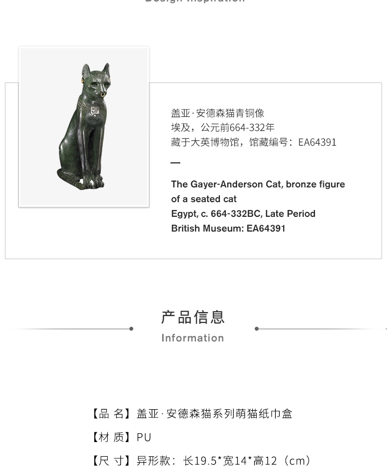 大英博物馆官方盖亚·安德森猫萌猫纸巾盒收纳盒创意简约礼物