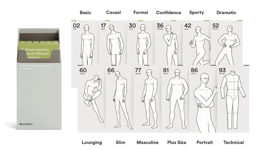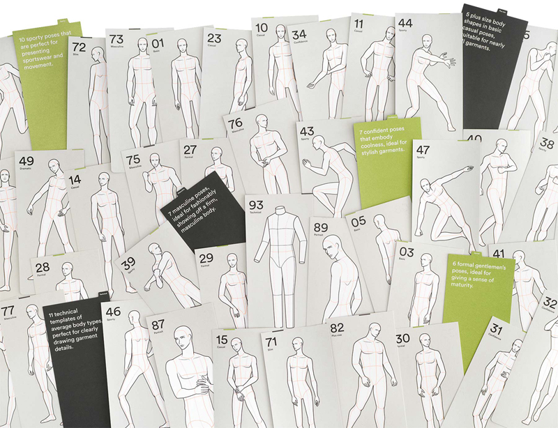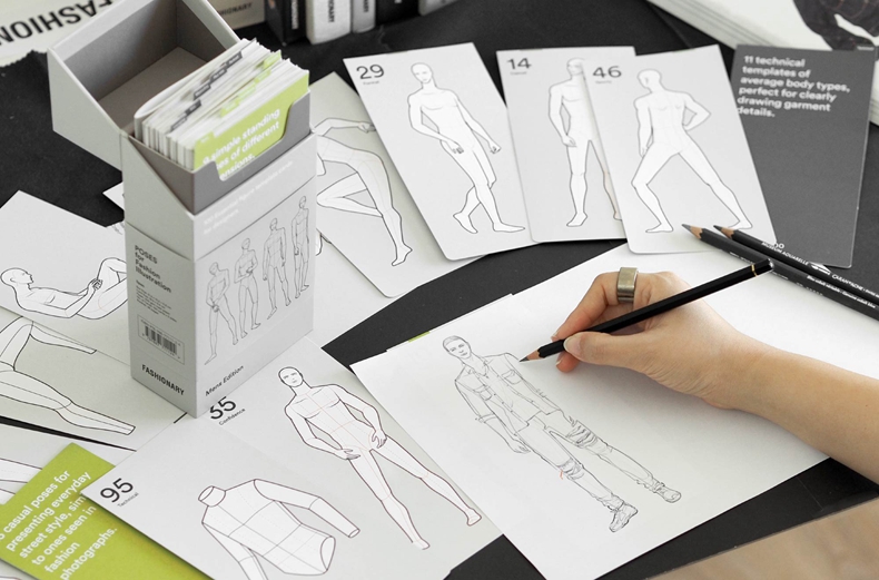 一套专门为时尚插画和草图设计量身定做的专业模板卡