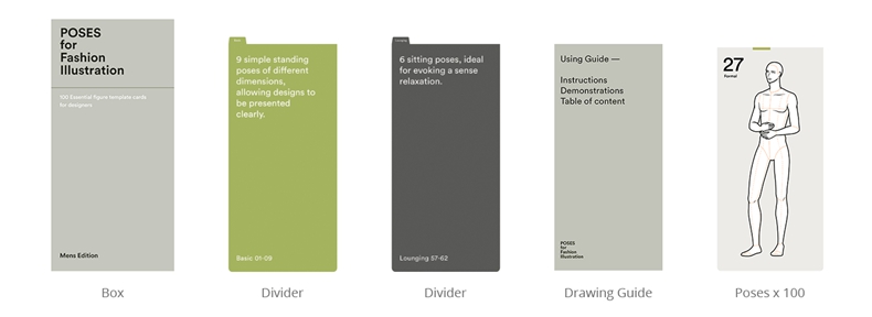 预售 【中商原版】100张男装设计手绘练习人体姿势卡 Poses for Fashion Illustration (Card Box) 进口艺术 Fashionary 服装设计 手绘