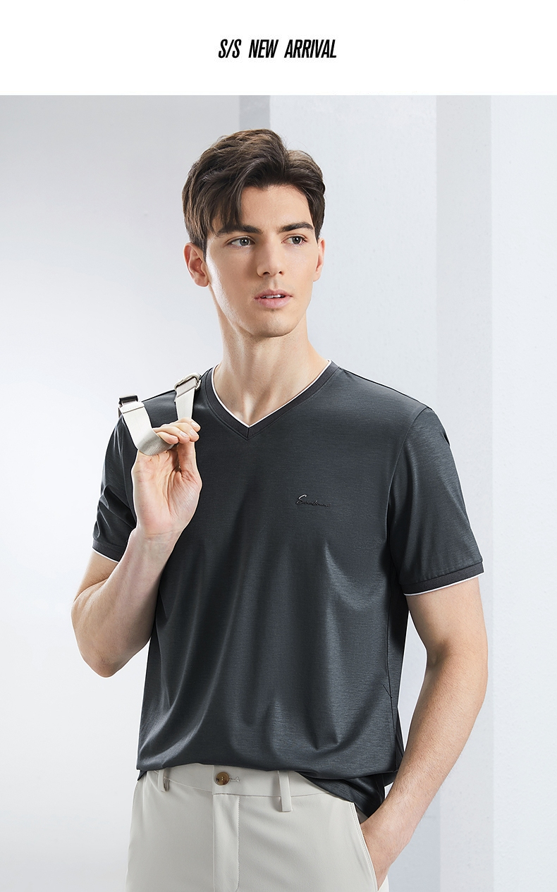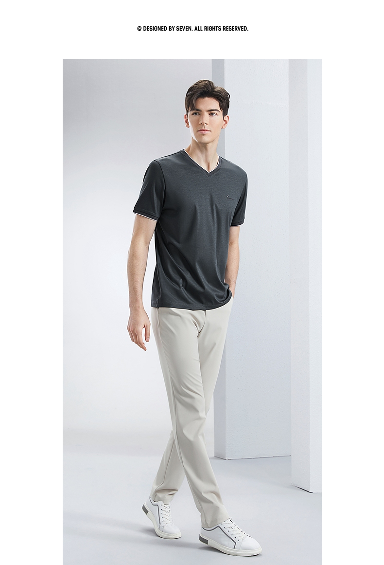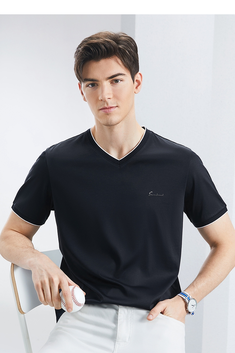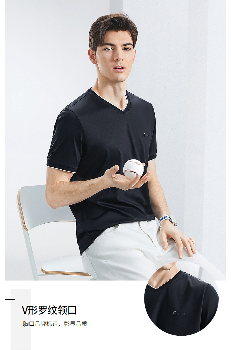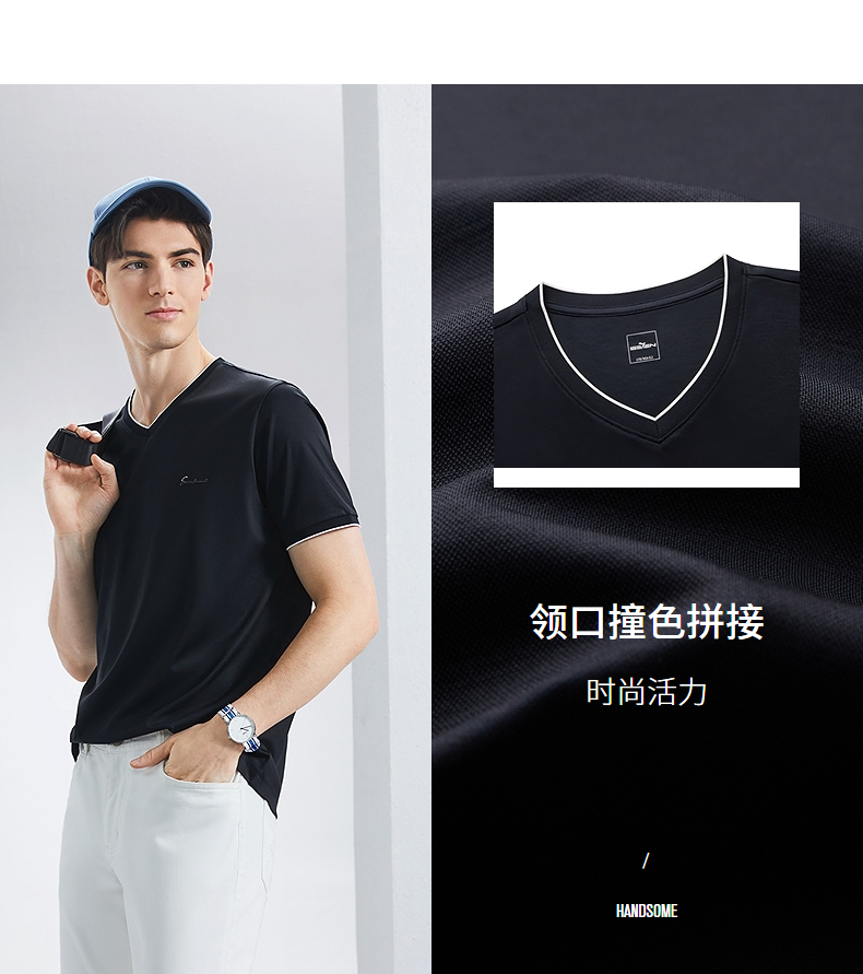【含桑蚕丝】柒牌短袖T恤男2024夏季新款时尚休闲拼接撞色V领体恤 126T71780