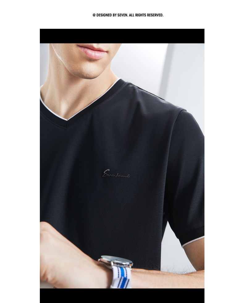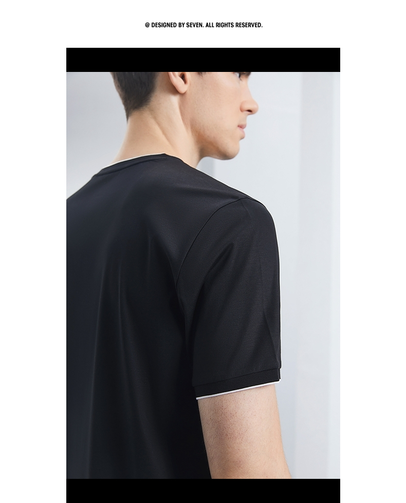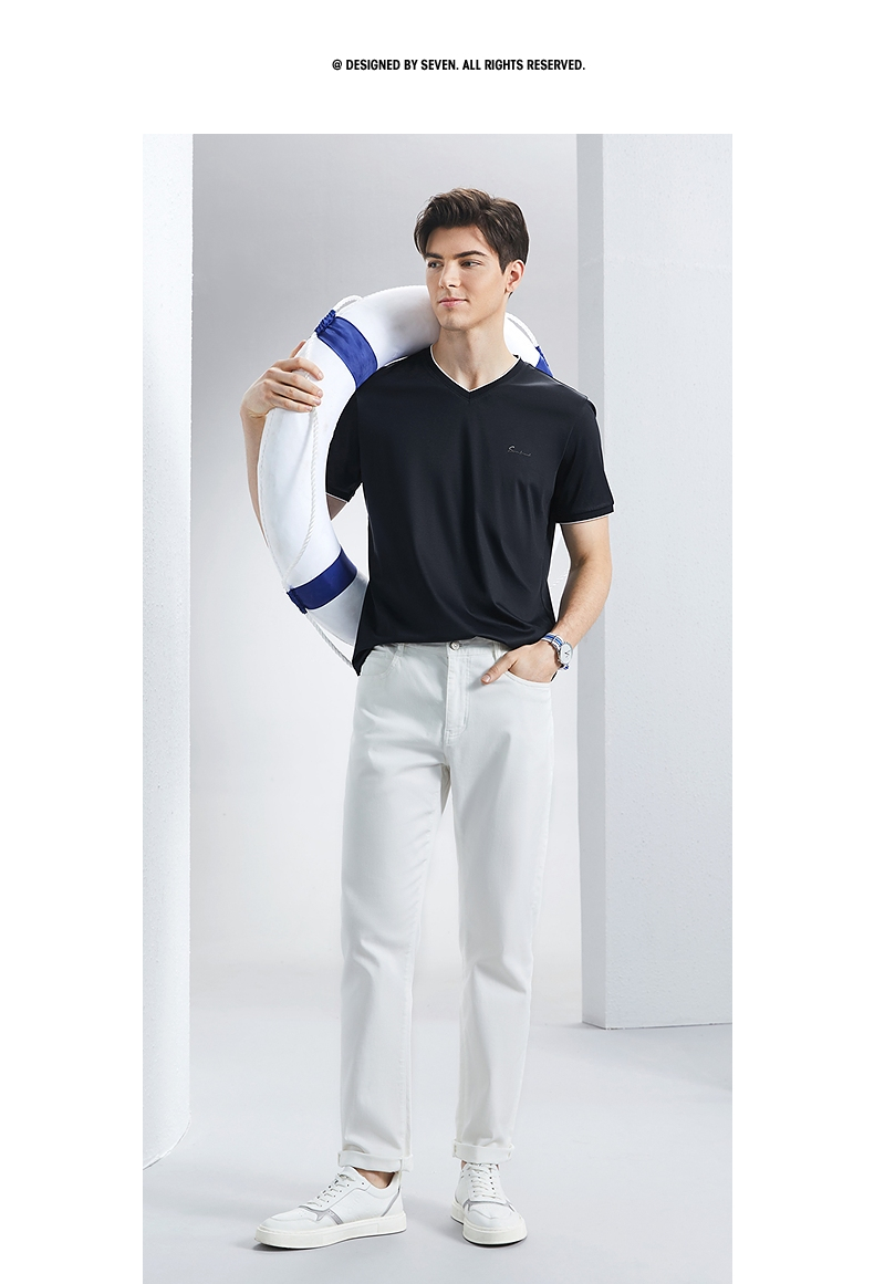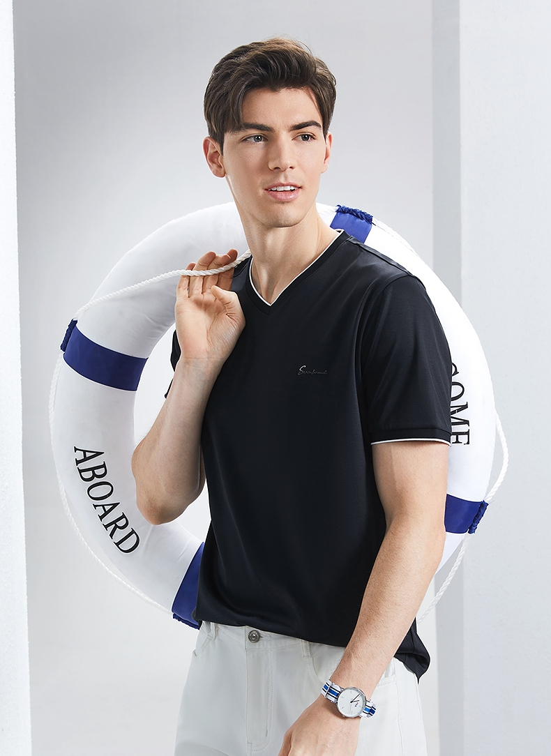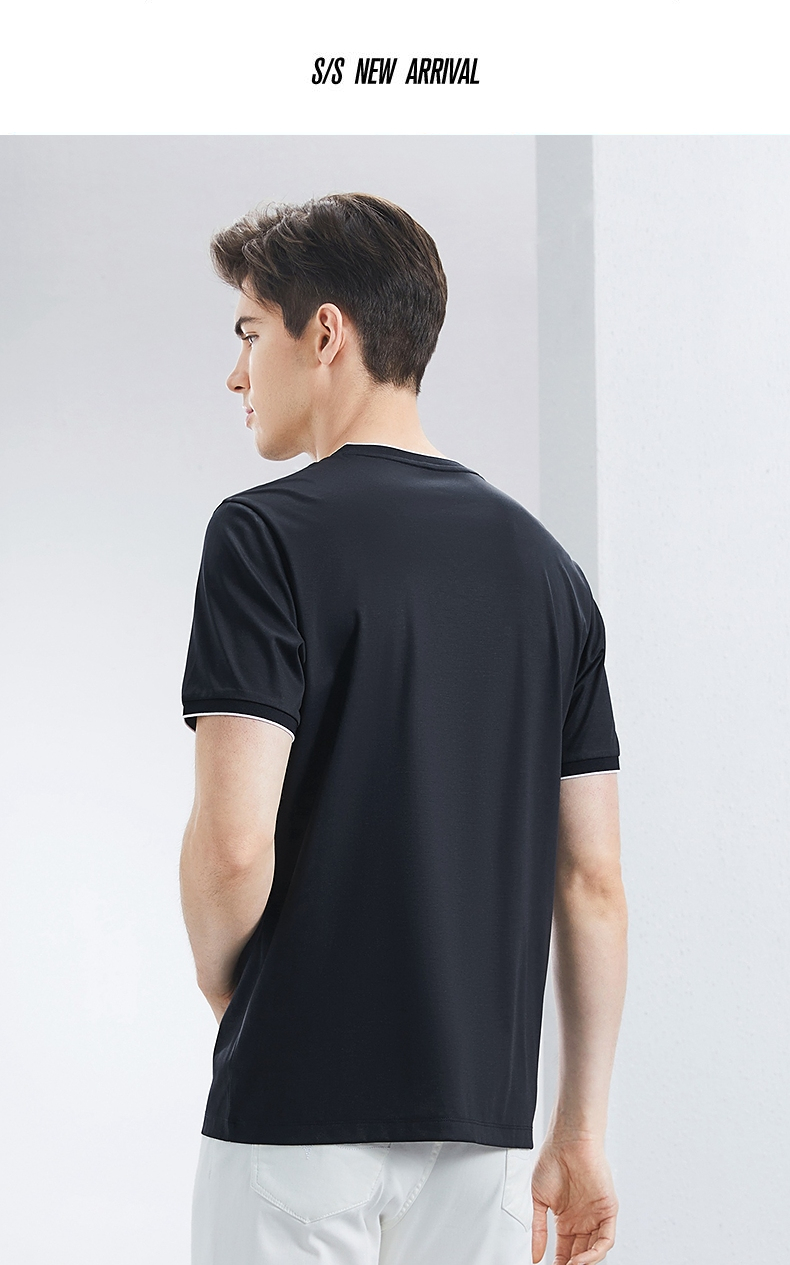 【含桑蚕丝】柒牌短袖T恤男2024夏季新款时尚休闲拼接撞色V领体恤 126T71780
