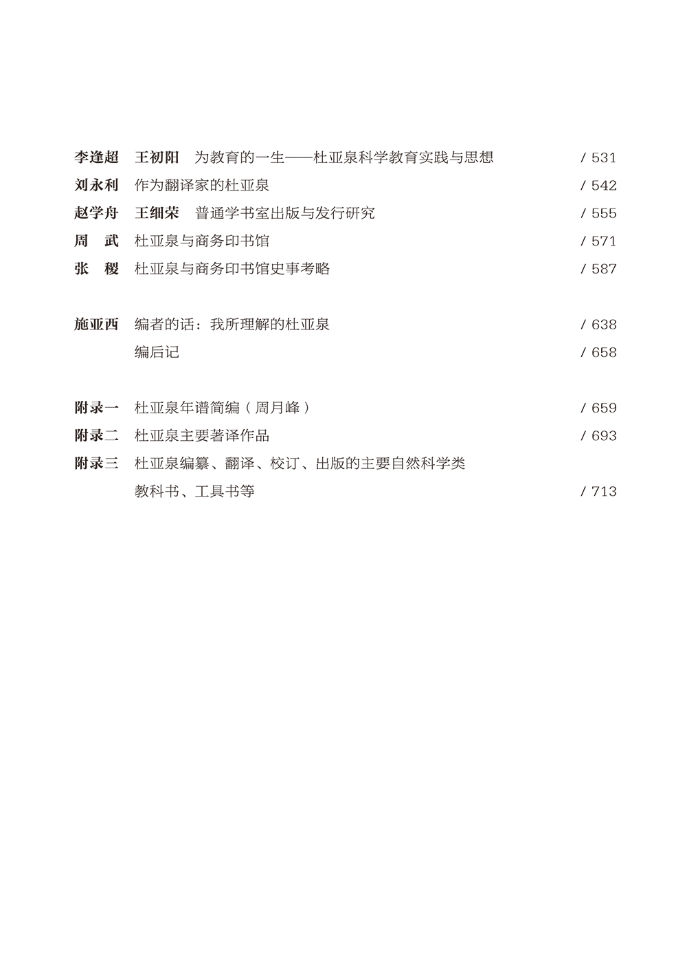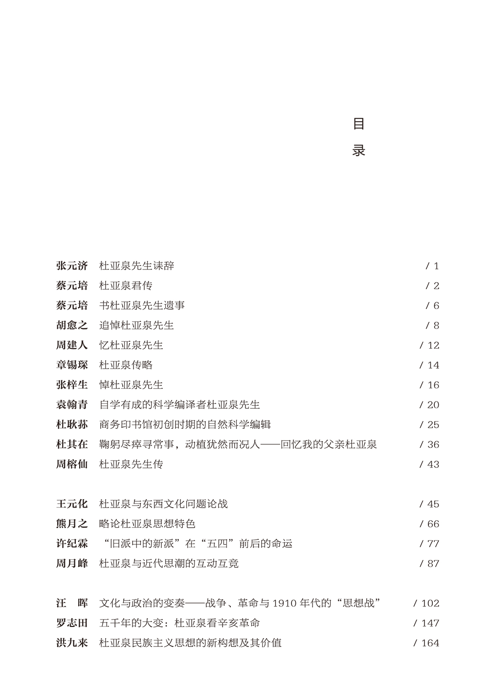 作为1911年至1919年间享誉中国的《东方杂志》主编,杜亚泉是一位百科全书式的大学问家,一个超越了自身时代的“另类启蒙”思想家。但是,在百年中国的革命时代背景下,杜亚泉所代表的审慎理性却被激进思潮长时间地淹没了。近二十年来,杜亚泉生平与思想的众多方面,包括《亚泉杂志》与《普通学报》、杜氏与商务印书馆、与《东方杂志》、与新文化运动、与白话文、与科学普及等,都得到了学界关注研究。他在其数量惊人的论著中留下了许多关于社会改造、政治鼎革及东西文化比较的深邃思考,对其思想的研究,时至今日仍具有超越时代的启发意义。本文集梳理、汇编了近年来对杜亚泉思想多个视角、维度的研究论文近40篇,将一个久被尘封、忘却或误读的杜亚泉,以其博雅、开明、周详、深刻的思想家形象,重新还原到思想史上。\r\n该书稿反映了近年来中国思想界对杜亚泉研究的最新成果。杜亚泉先生的文章绝大部分是文言文,且篇幅较长,给当代读者阅读带来了一定困难,这本书可以充当一把钥匙,为读者打开一扇方便之门,帮助读者感受这位先哲的智慧光芒。杜亚泉先生长期主持商务印书馆编译所理化部工作,编辑出版了大量科学类教科书、工具书,为商务印书馆的科学出版事业做出了巨大贡献。本书的出版亦能为研究商务印书馆与现代中国的科学传播、教育启蒙提供新的思路与视野。