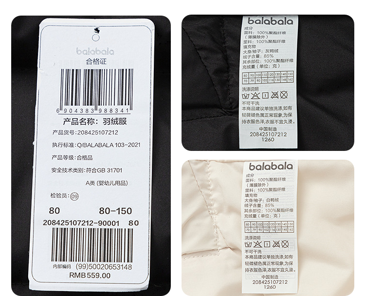 巴拉巴拉balaOne童装儿童羽绒服宝宝女童男童2025冬季厚保暖外套