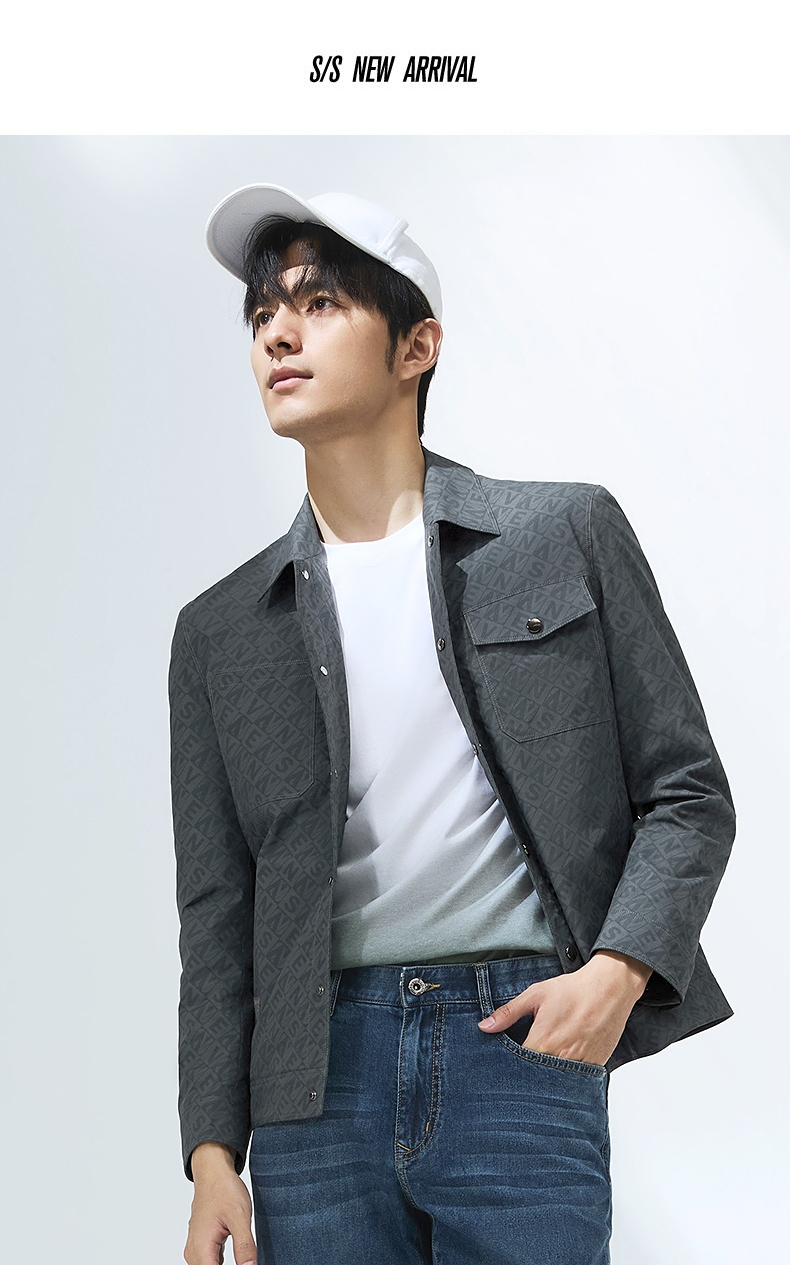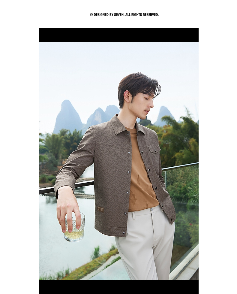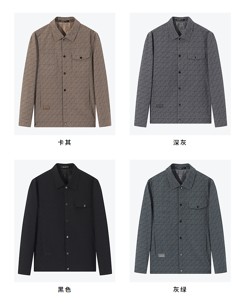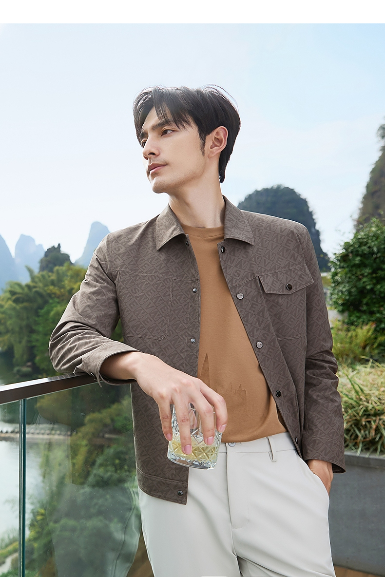 柒牌男装夹克男春季2025新款时尚休闲工装风字母满印翻领茄克外套128K70980