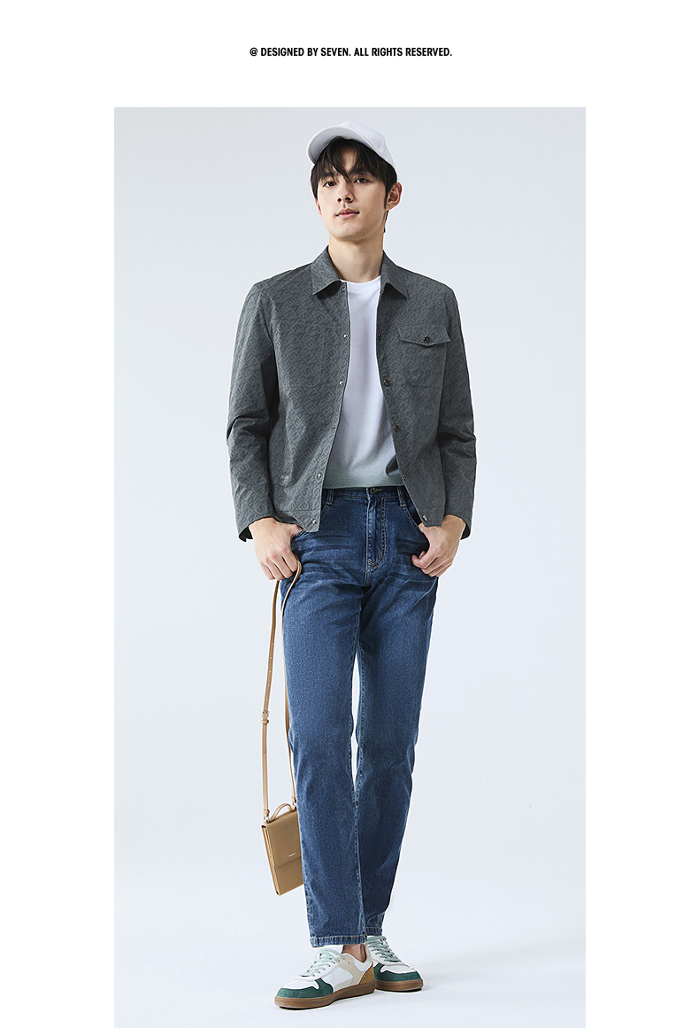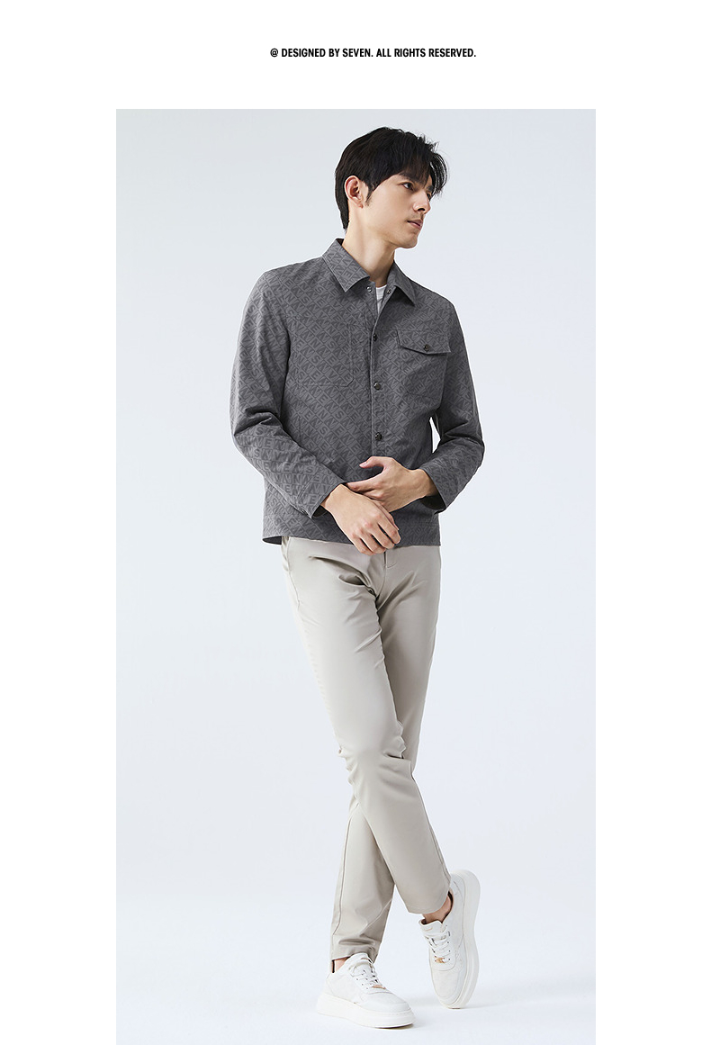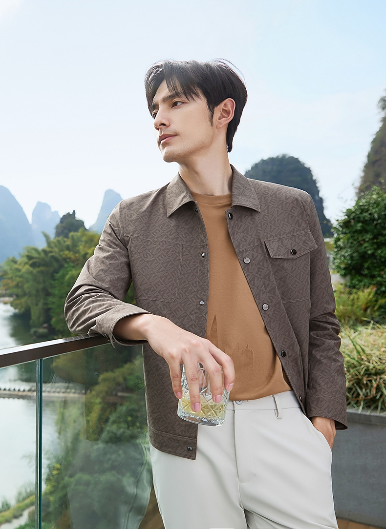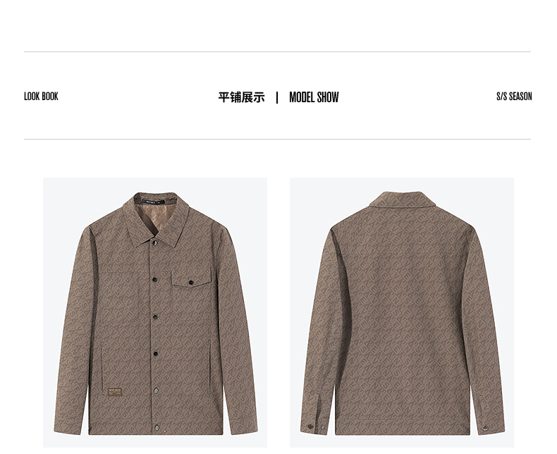 柒牌男装夹克男春季2025新款时尚休闲工装风字母满印翻领茄克外套128K70980