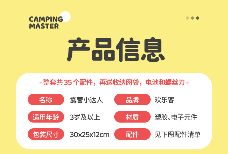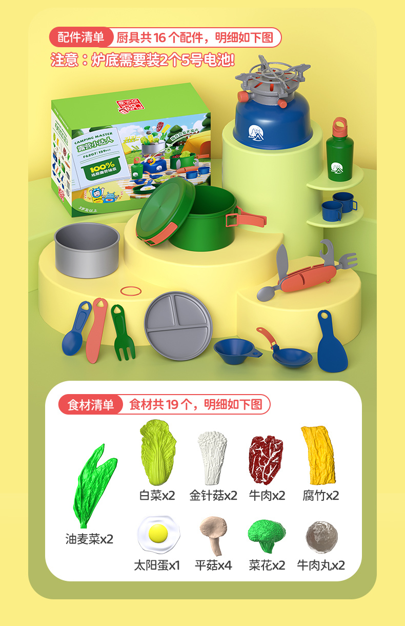 【欢乐客露营小达人】春游踏青宝宝必备打造户外露营氛围感,一定要带上的露营装备含15件露营装备,19件仿真食材露营装备和食材按照实物100%还原 自带声光效果,让你声临其境