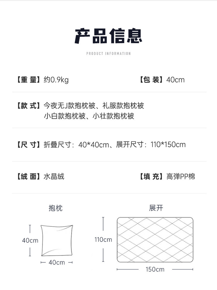 【实付满199送钥匙扣】【今夜无J&礼服抱枕被】柔软舒适靠枕靠垫 抱枕被子两用