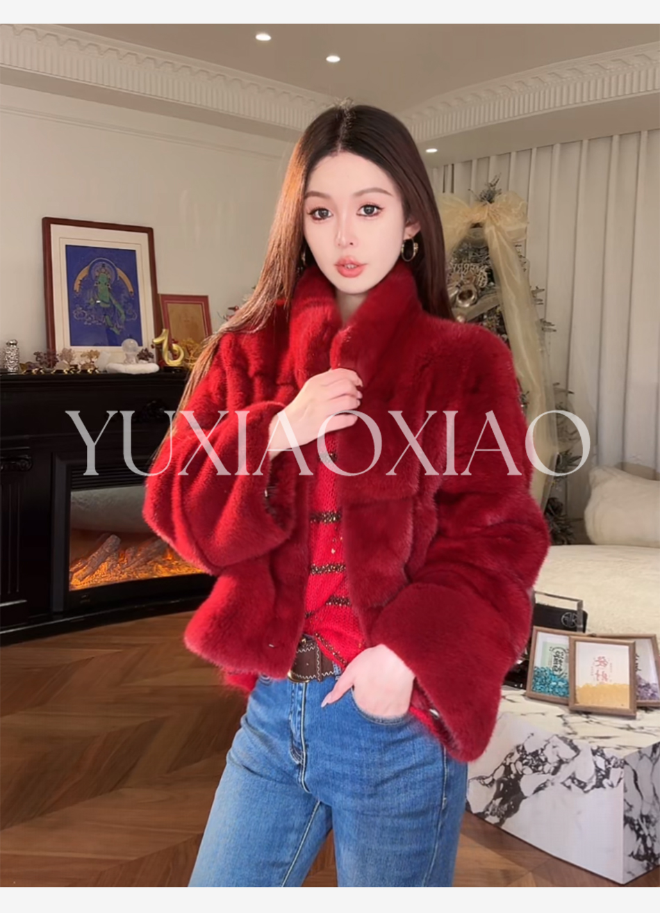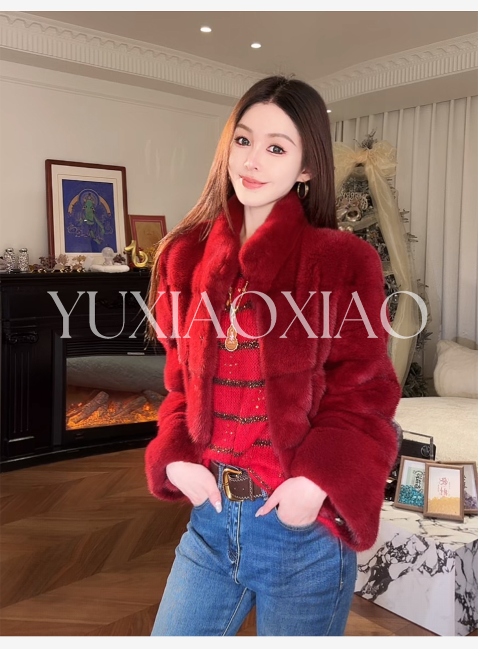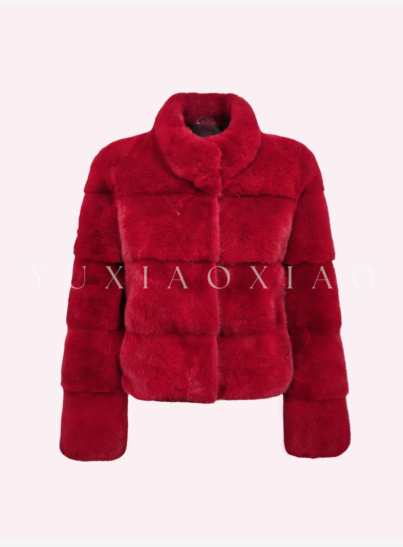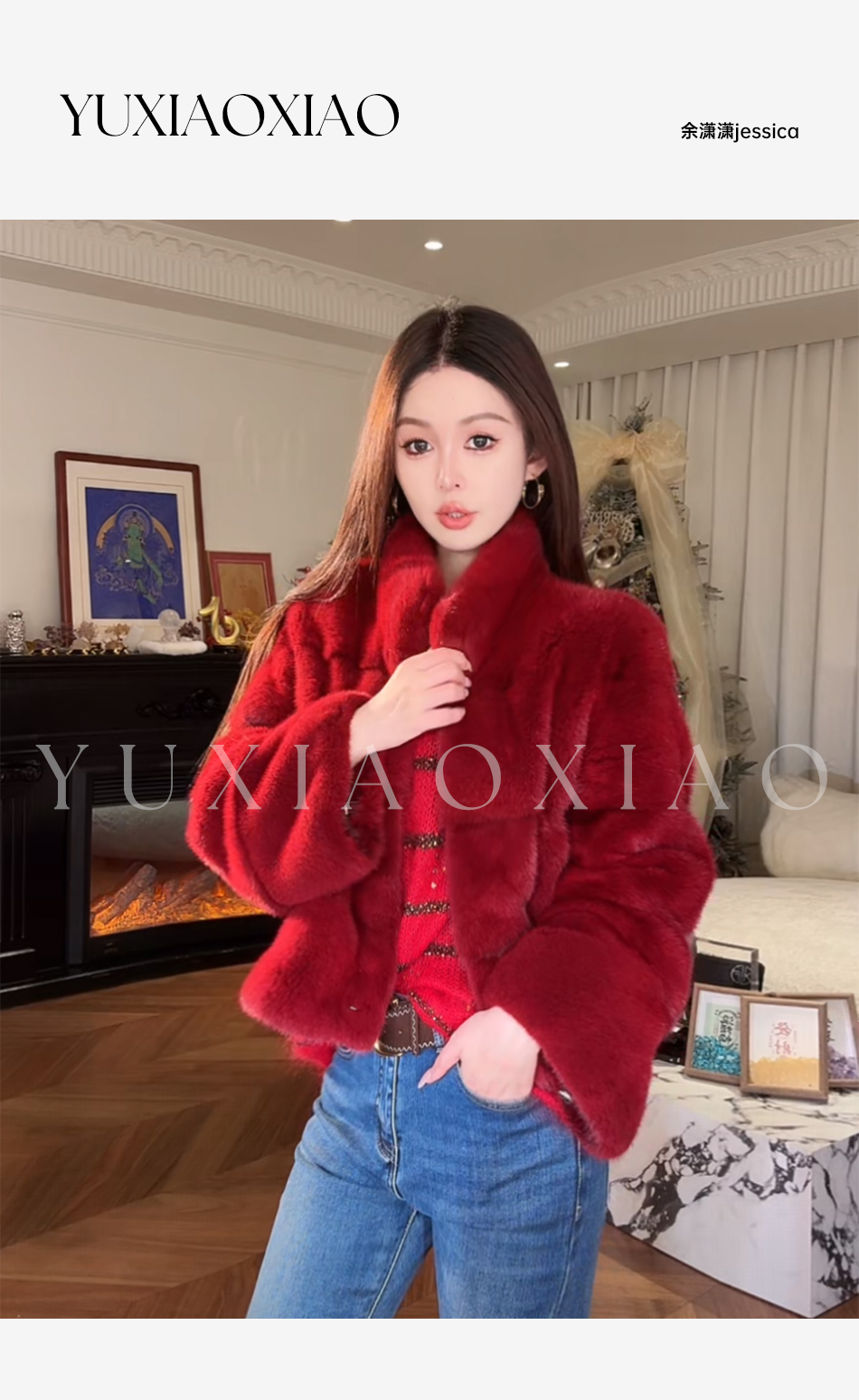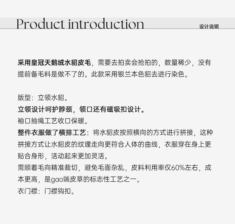 余潇潇【红酒名利场】天鹅绒水貂毛银兰本色貂染色横排工艺水貂外套