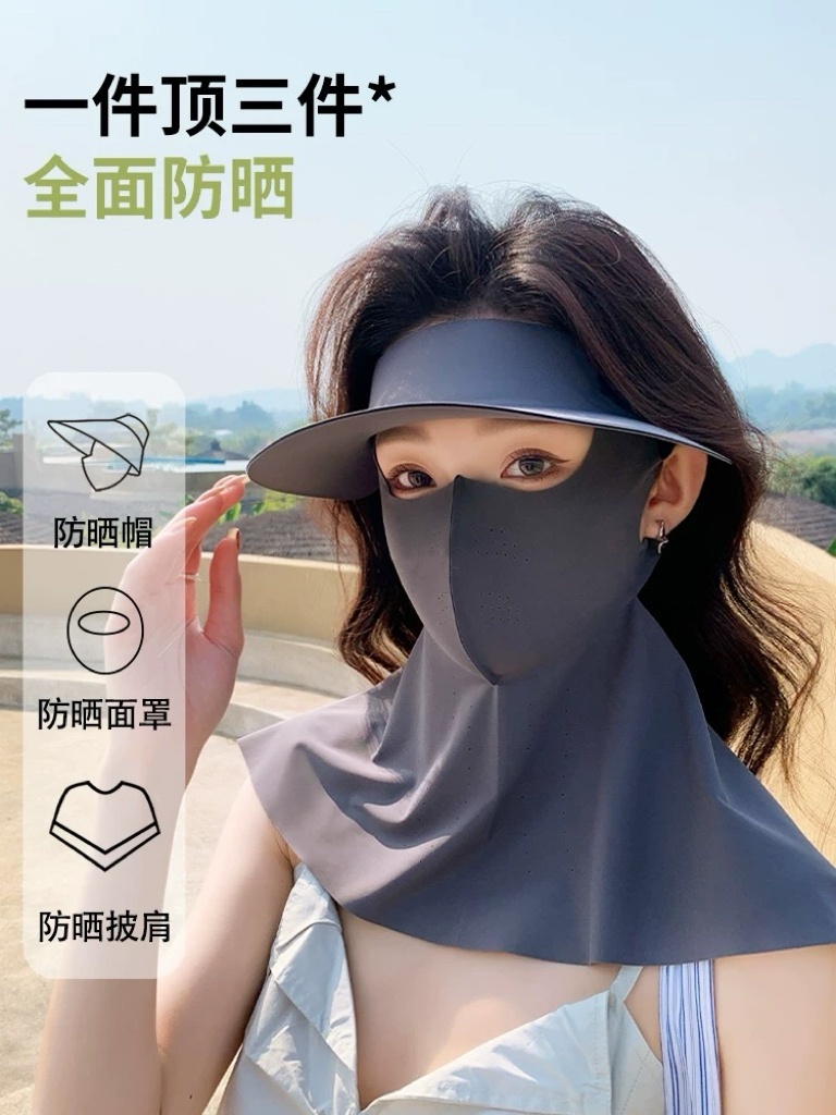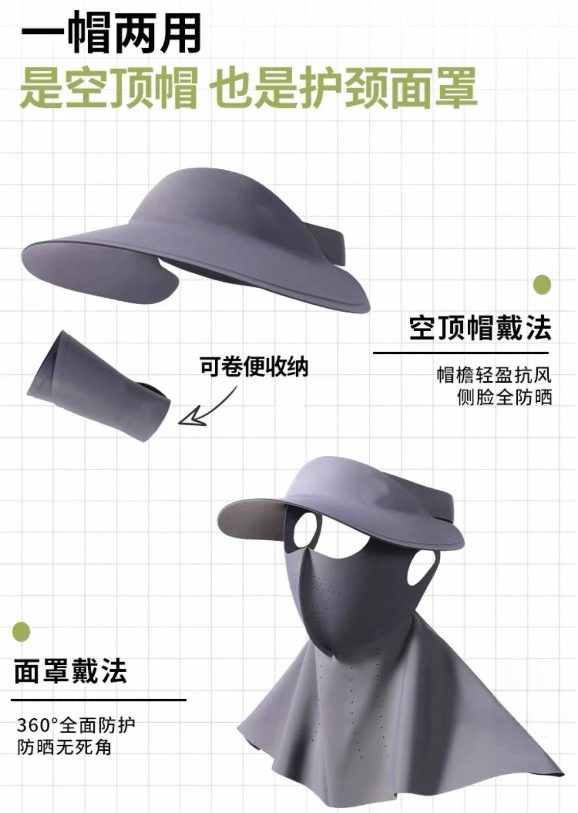 炫彩雯丝全面轻量化防晒二合一 全新升级 全脸防晒【黑胶帽+口罩/面罩一体防晒脸基尼】