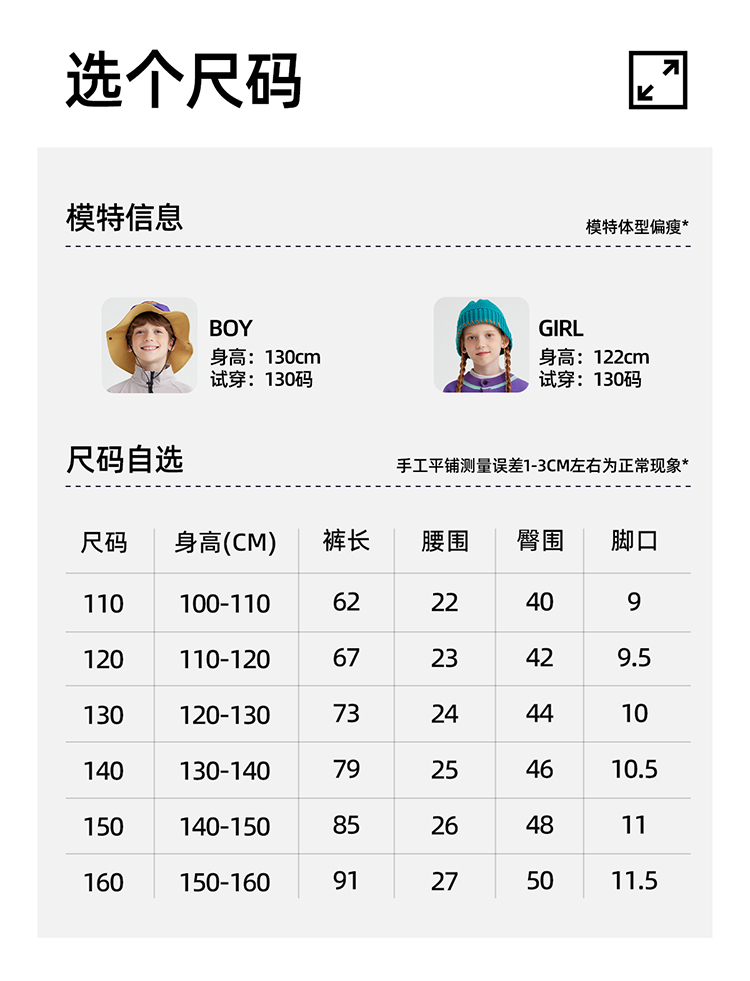 【一体登山绒】机能裤【280g厚款】儿童轻户外加厚休闲裤 PQK2424