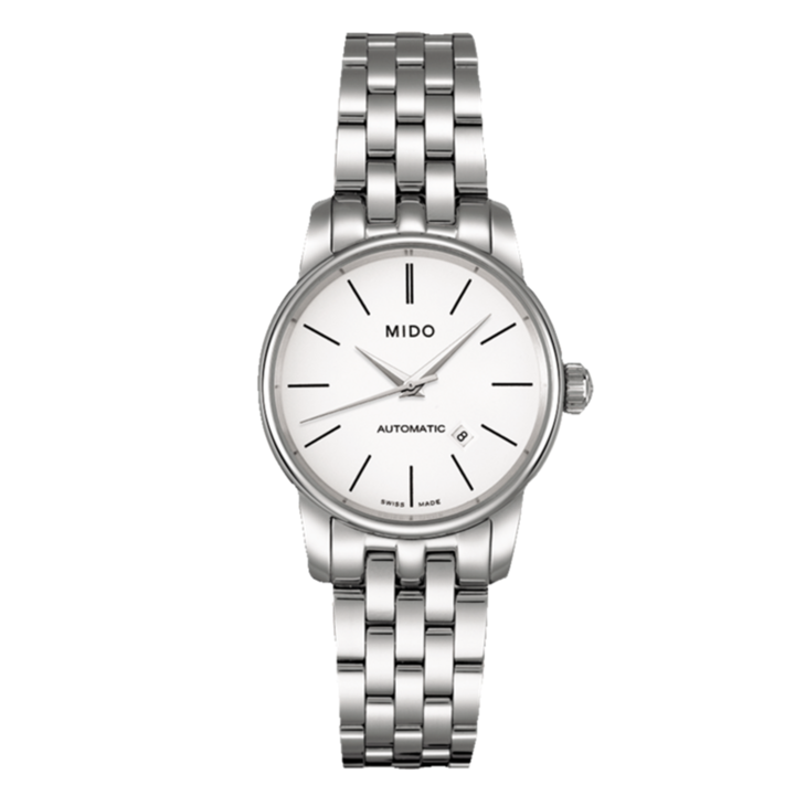 白色珍珠母贝表盘,镶嵌12颗钻石(0.025克拉)时标