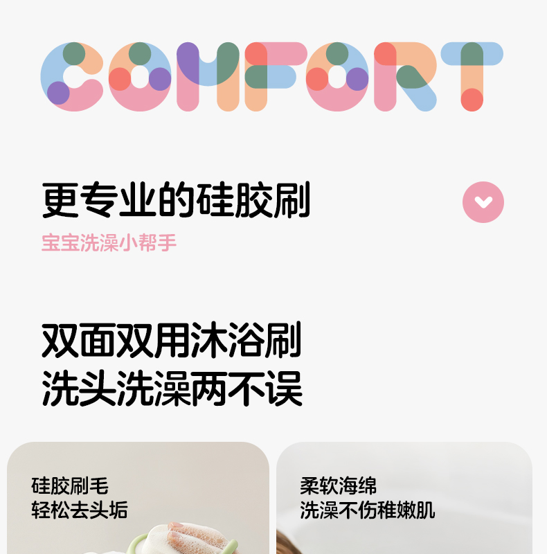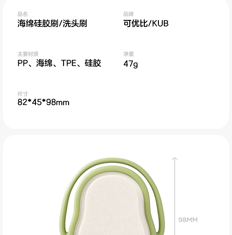 KUB可优比婴儿洗澡洗头刷去头垢硅胶搓澡棉神器儿童沐浴搓泥宝宝
