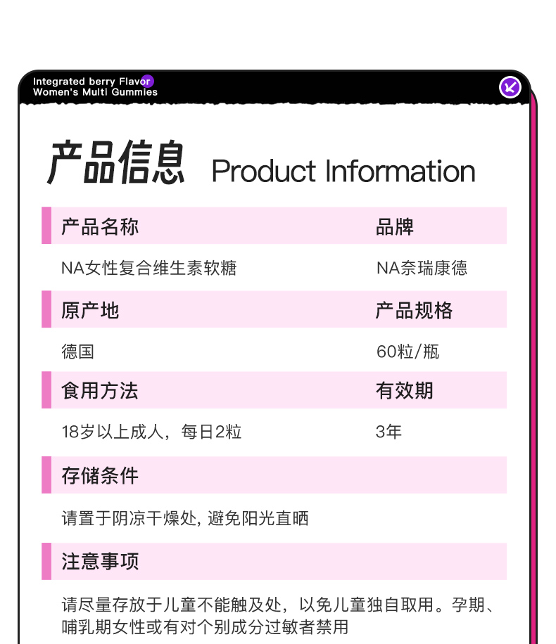 NA女性复合维生素麦角硫因软糖 20重多种营养素,全面呵护女性身体健康 每2粒含麦角硫因30mg K衰K氧化