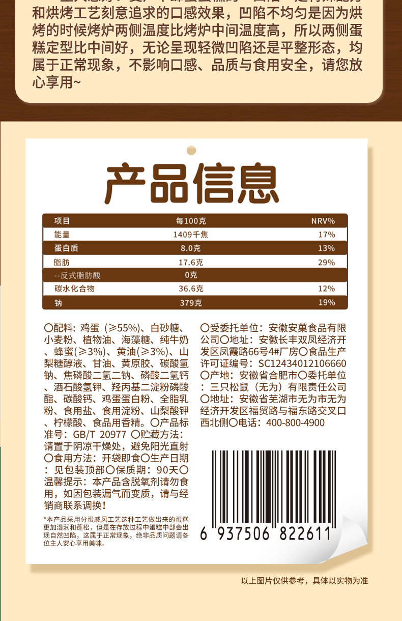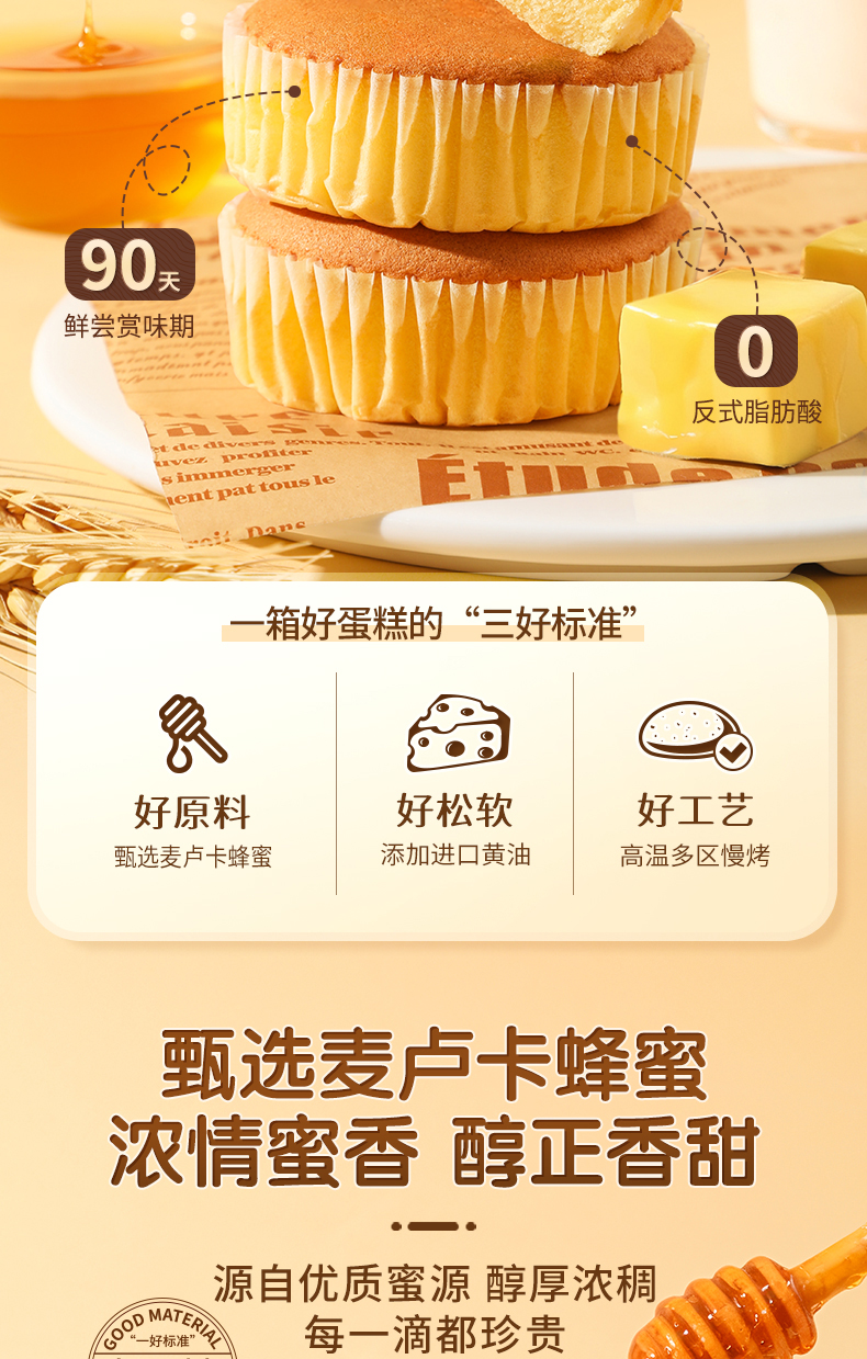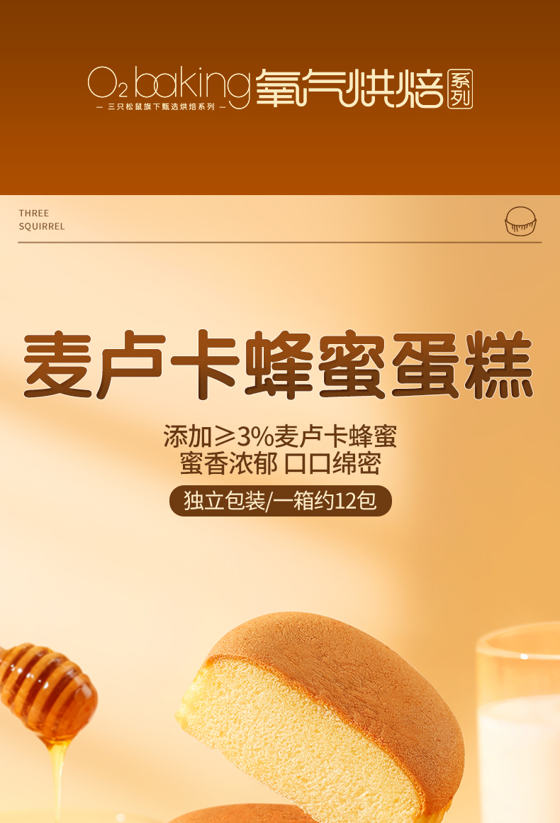 三只松鼠 麦卢卡蜂蜜蛋糕400g 甄选≥3%蜂蜜