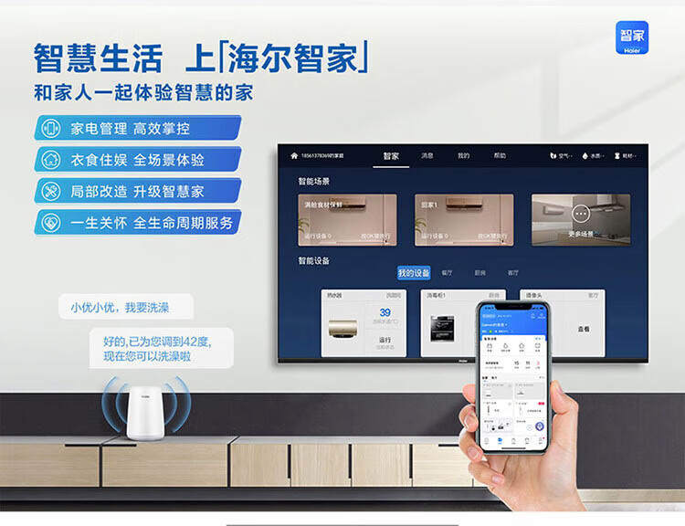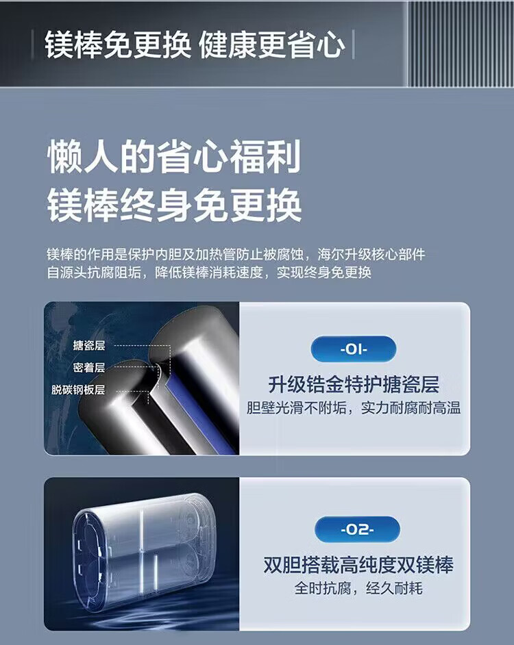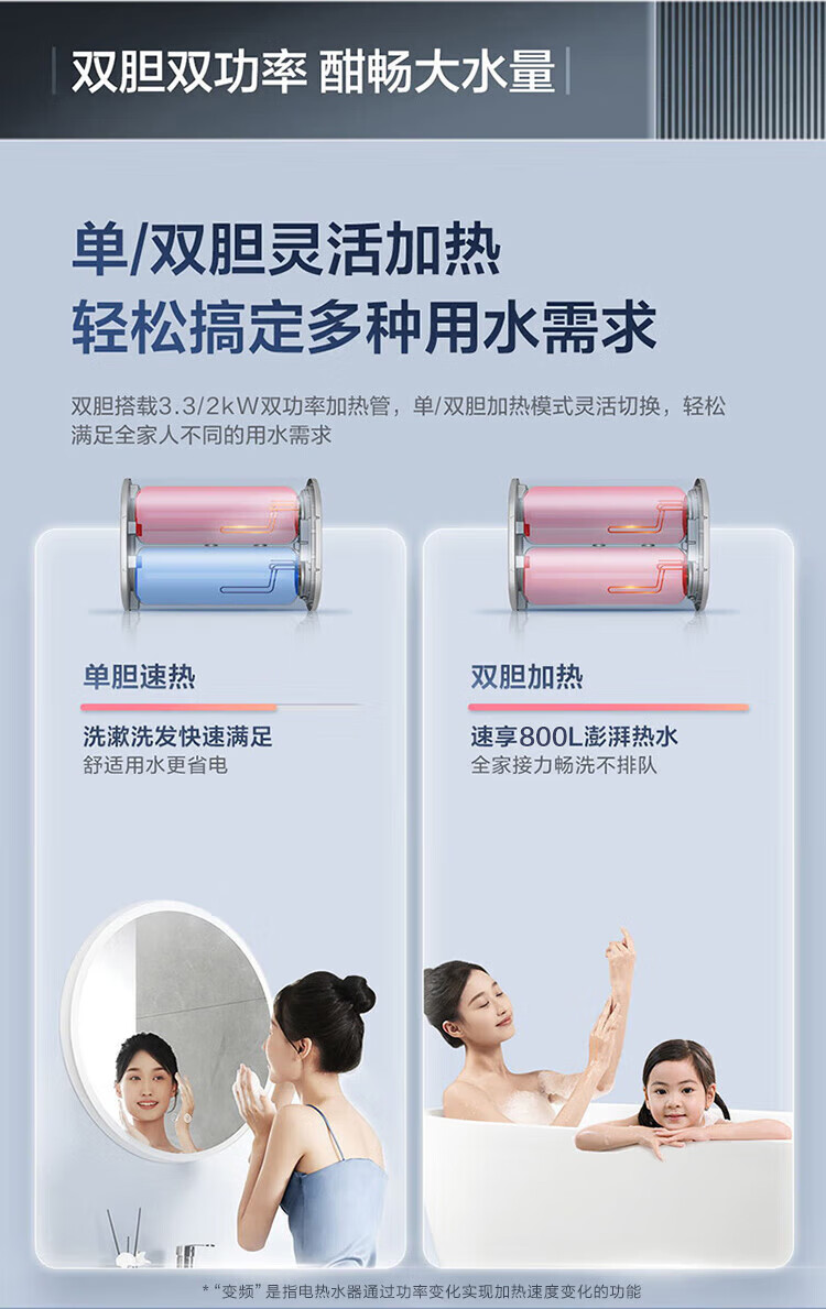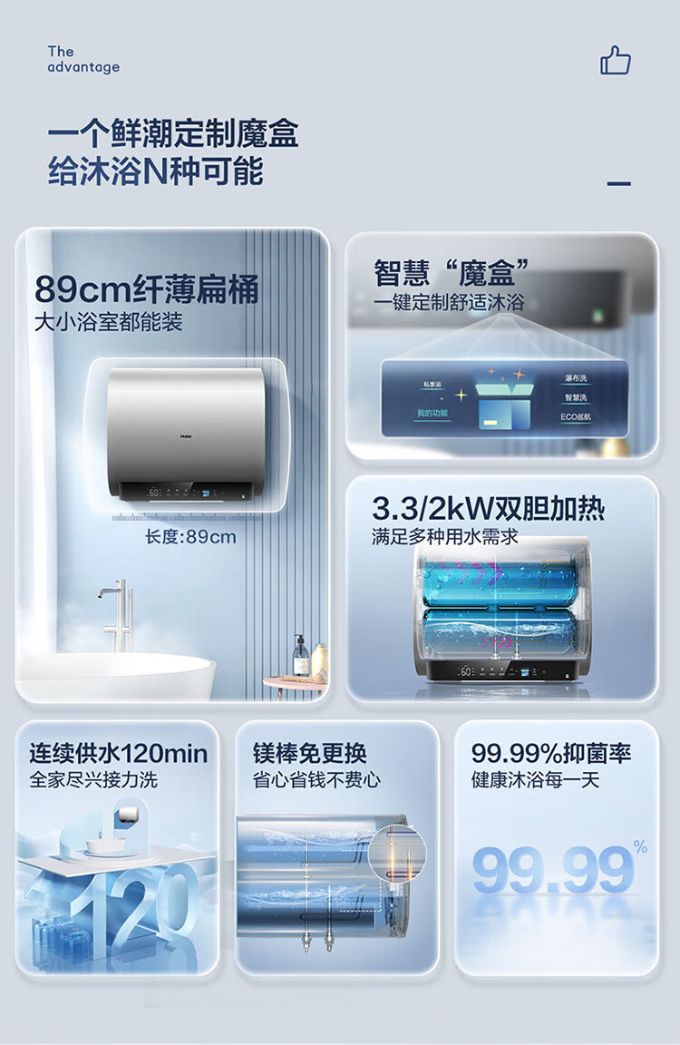 海尔(Haier)80升【小魔盒】定制洗浴超薄扁桶双胆家用电热水器3300W变频速热镁棒免更换WiFi智能 EC8003-BK3U1