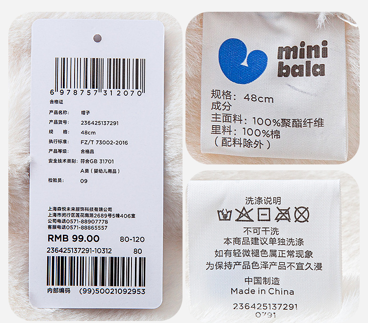 【熊猫造型】迷你巴拉巴拉儿童帽子男女童宝宝护耳保暖亲肤帽子