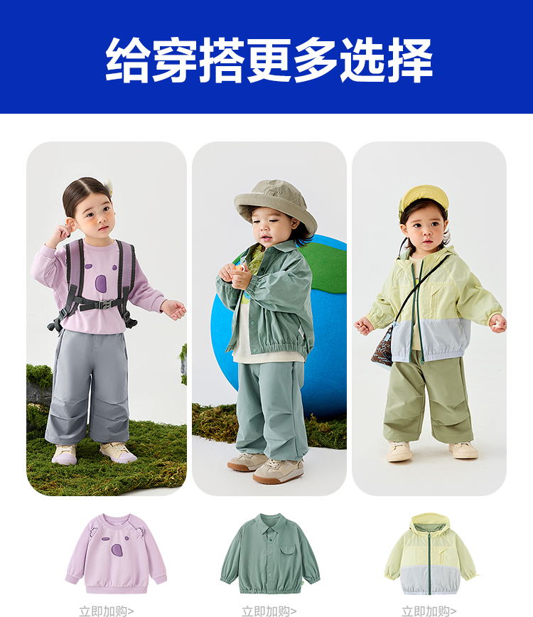 迷你巴拉伞兵裤长裤男童女童宝宝户外防水防污易打理宽松三防