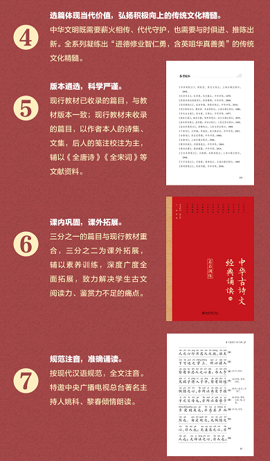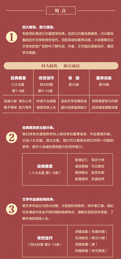 | 【规格明细】诵读读本(14册)+导读(1册)+素养训练(1册)+“博雅”名句摘抄笔记本(1册) |