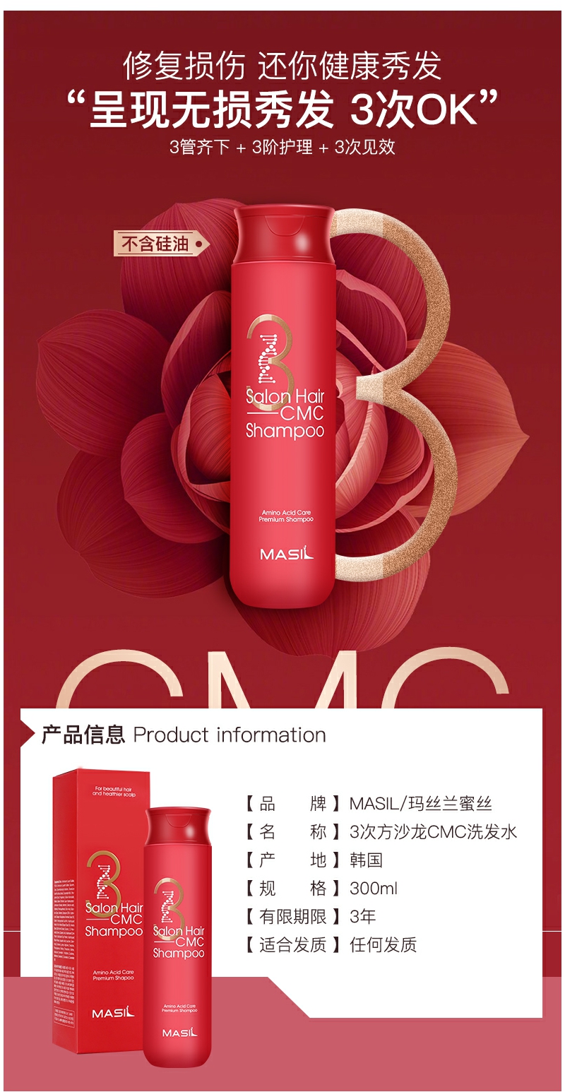 【YZ】玛丝兰3次方CMC复合无硅油洗发水 修复干枯毛躁