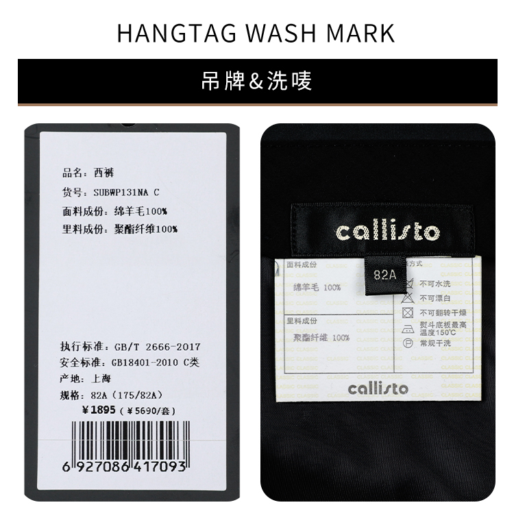 callisto灰色绵羊毛混纺西裤 SSBWP001C