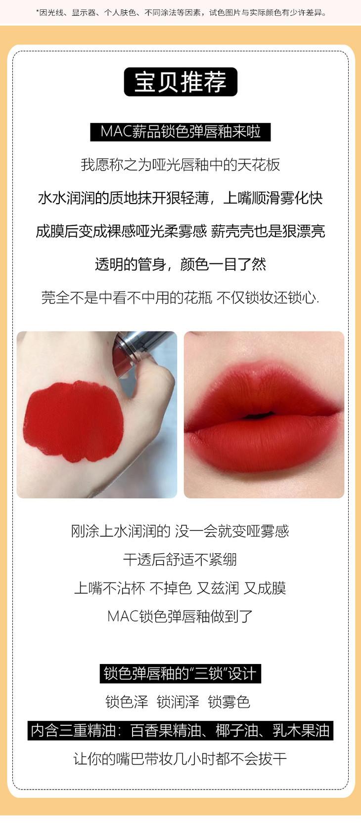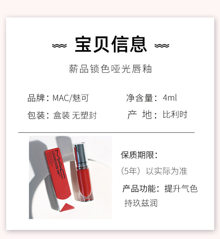 【限时价】MAC魅可锁色弹唇釉2ml 试色小样