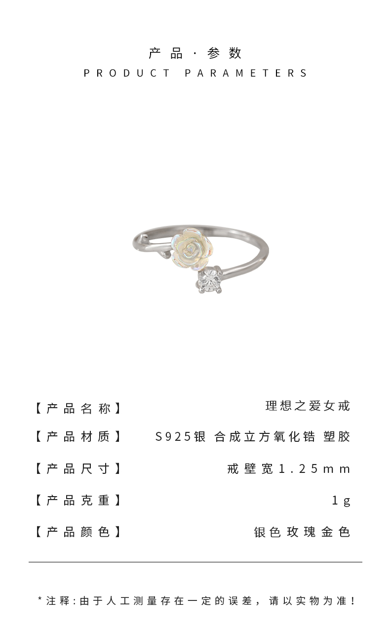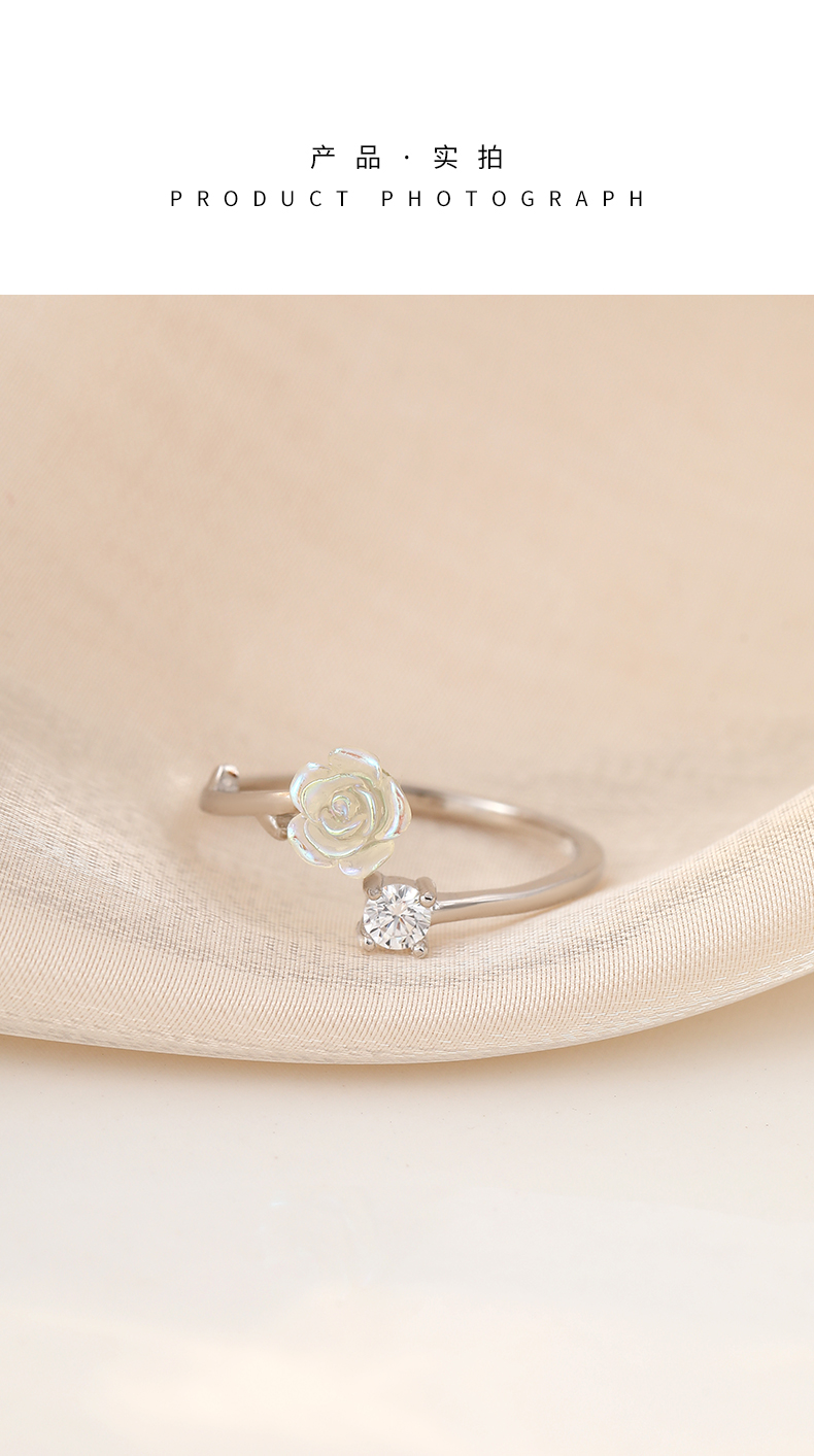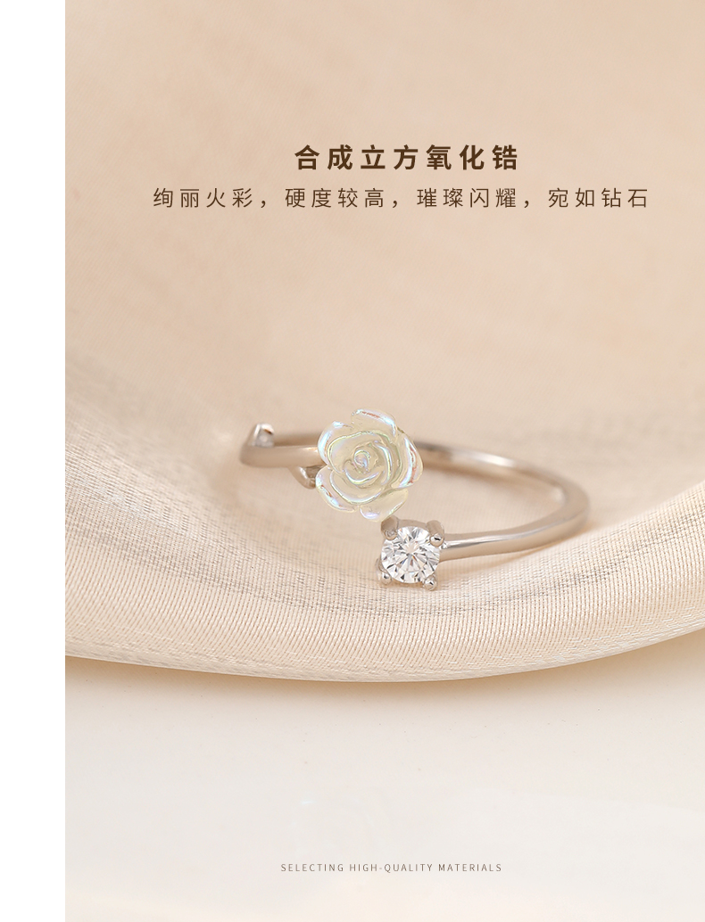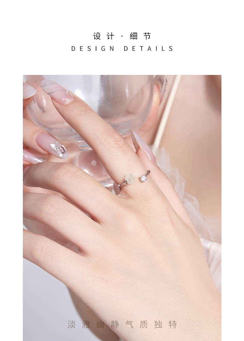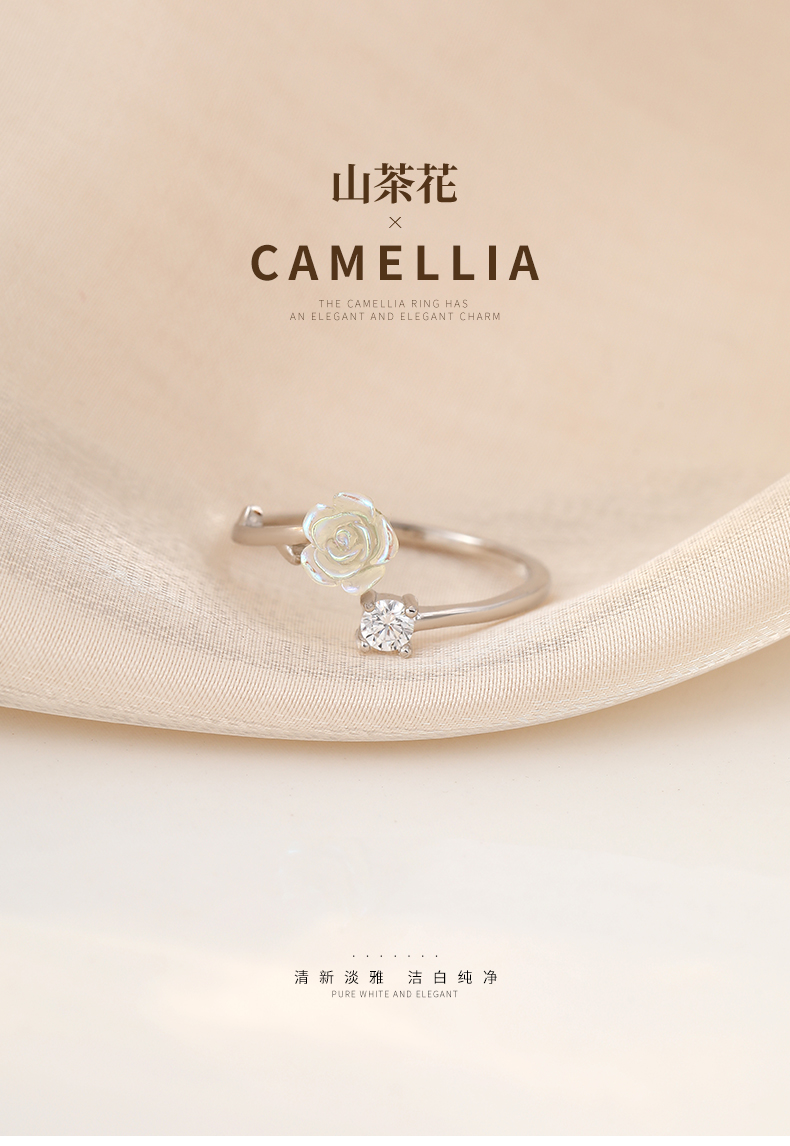卡蒂罗/KADER 理想之爱女戒 925银新中式优雅山茶高洁典雅开口可调节一只 清新浪漫洁简约配饰 闺蜜同款女生款
