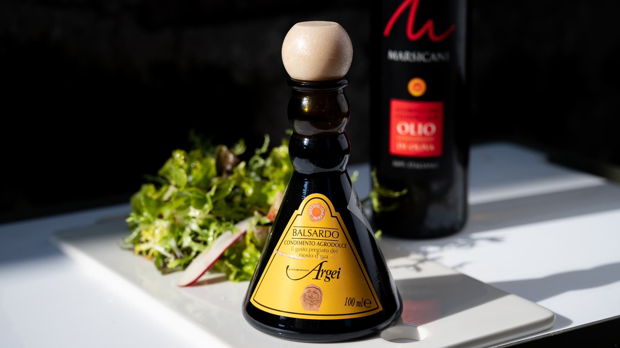 Balsardo葡萄香醋,来源于天然的葡萄酒醋和加热熬制的浓缩葡萄果汁。两者在木桶中经过自然发酵数年,陈年后,得到酸甜可口,果味芬芳的葡萄香醋。