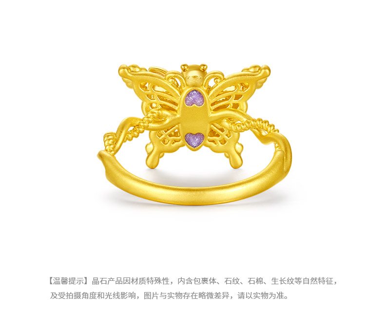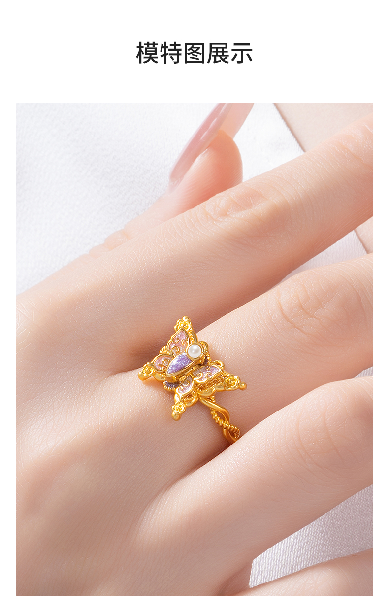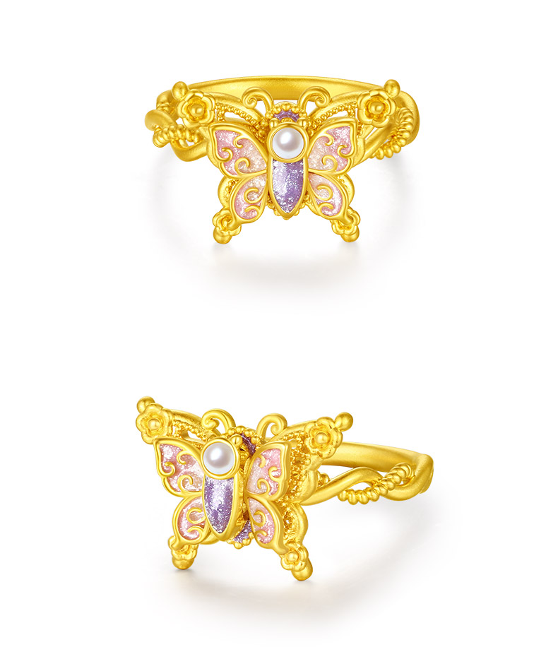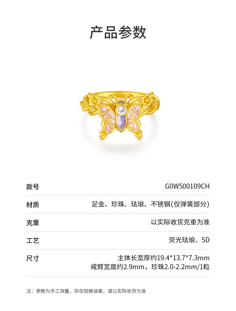 【无忧之夜同款】周大生黄金戒指足金闪光蝴蝶指环心动蝶舞莫奈荧光珐琅生日礼物
