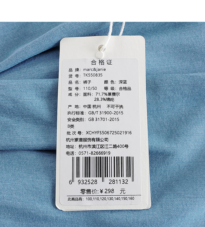 【防晒】马克珍妮女童天丝软牛仔短裤儿童裤子2025夏装新款550835