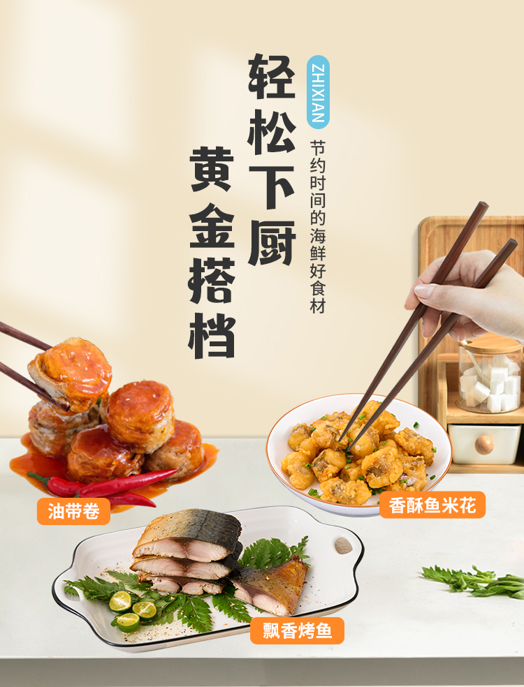 积分兑换丨轻松下厨黄金搭档 秒变大厨必备 油带卷300g*1+香酥鱼米花250g*1+飘香烤鱼200g*1