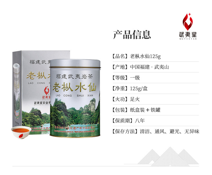 武夷星 老枞水仙 银罐 罐装125g