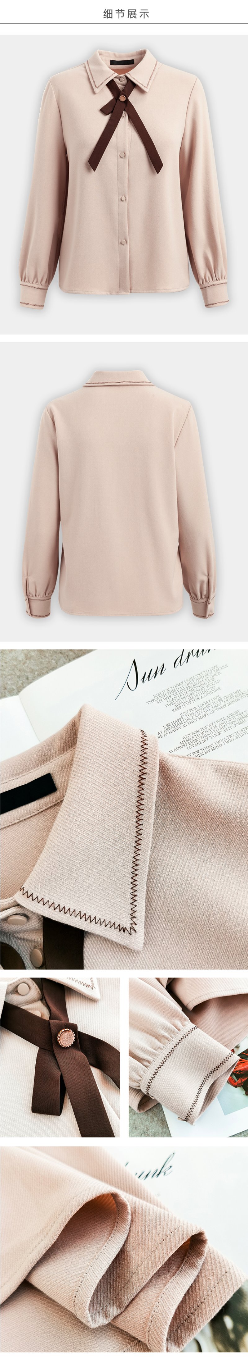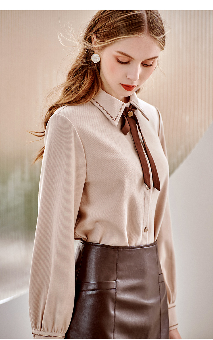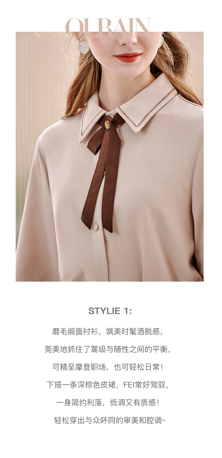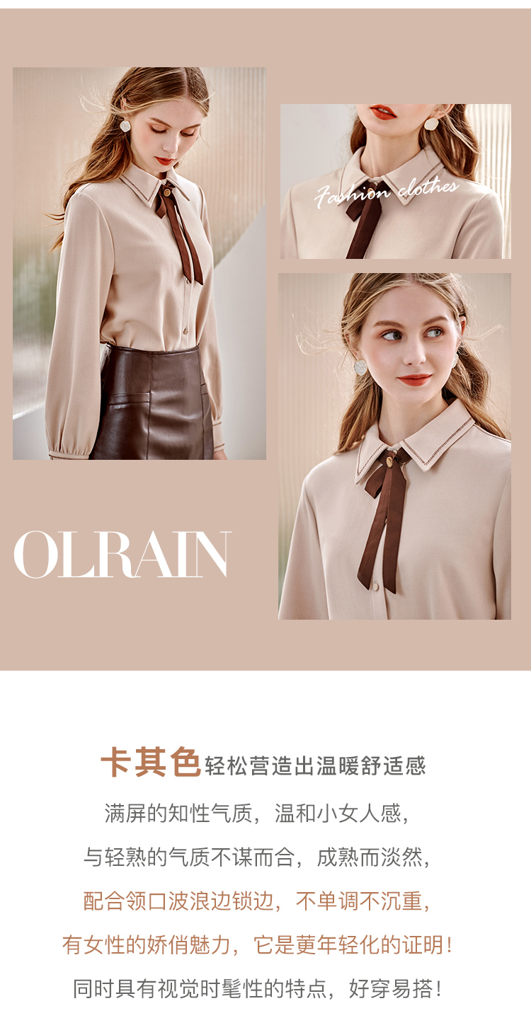【双11提前购】欧芮儿卡其色长袖衬衫女春季新款宽松显瘦磨毛气质设计感小众上衣