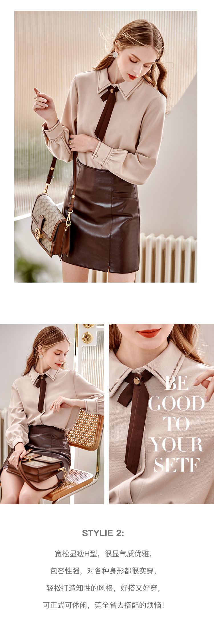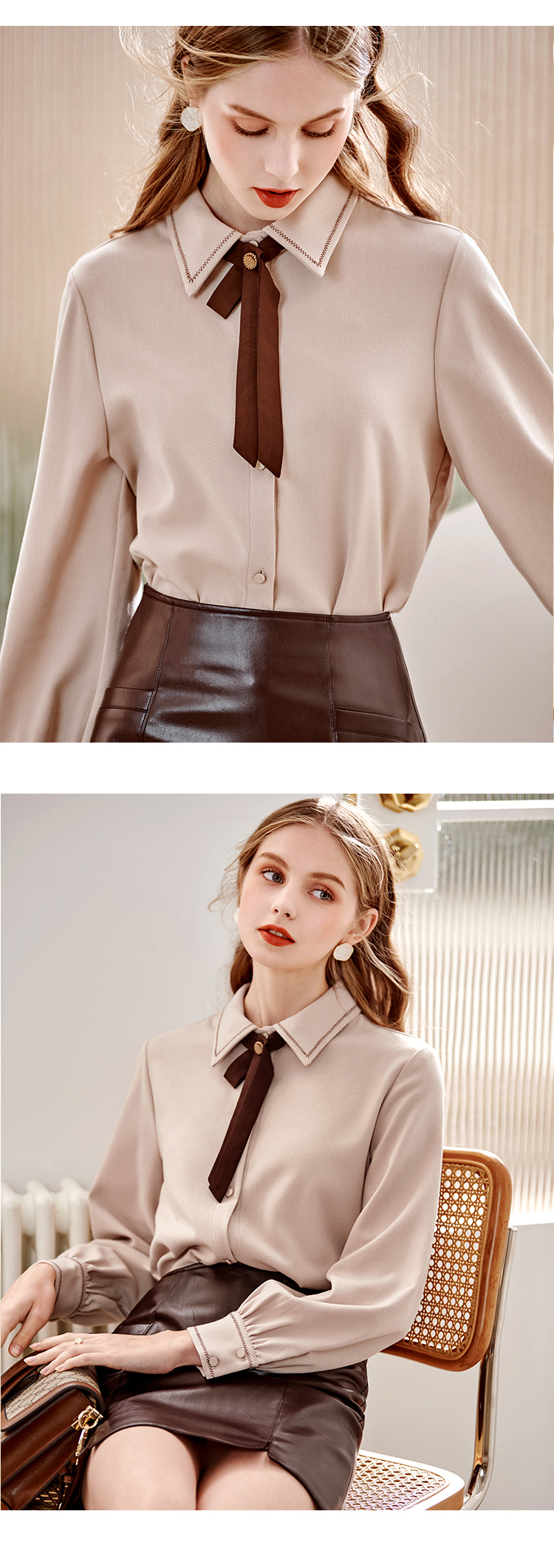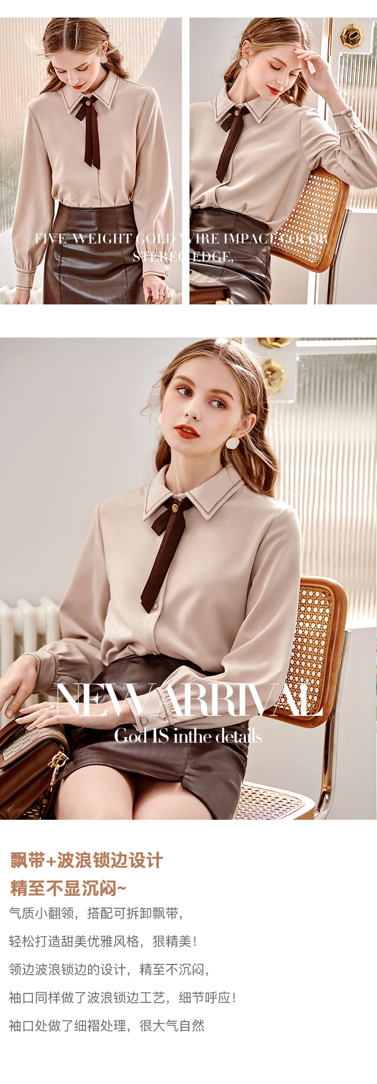 【双11提前购】欧芮儿卡其色长袖衬衫女春季新款宽松显瘦磨毛气质设计感小众上衣