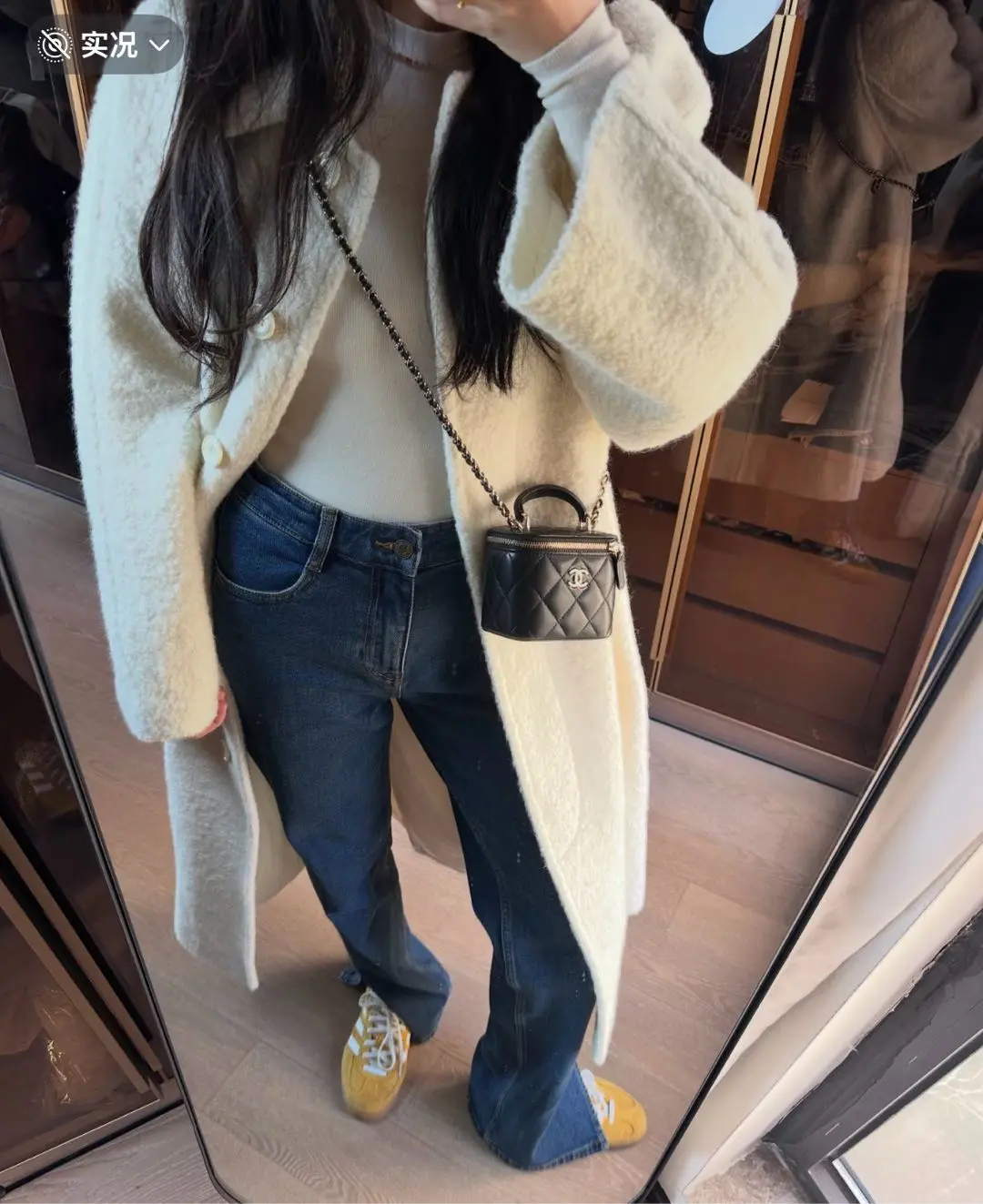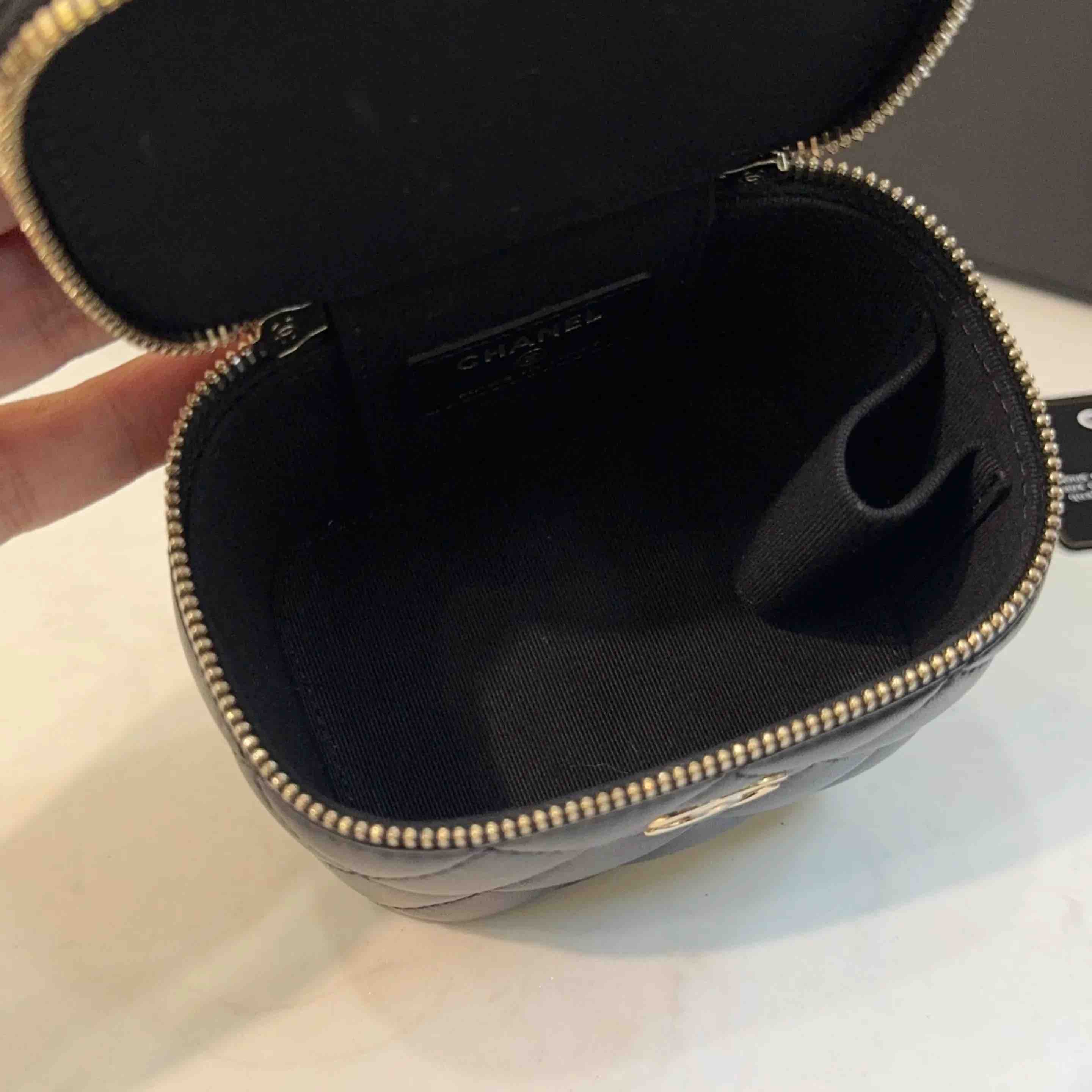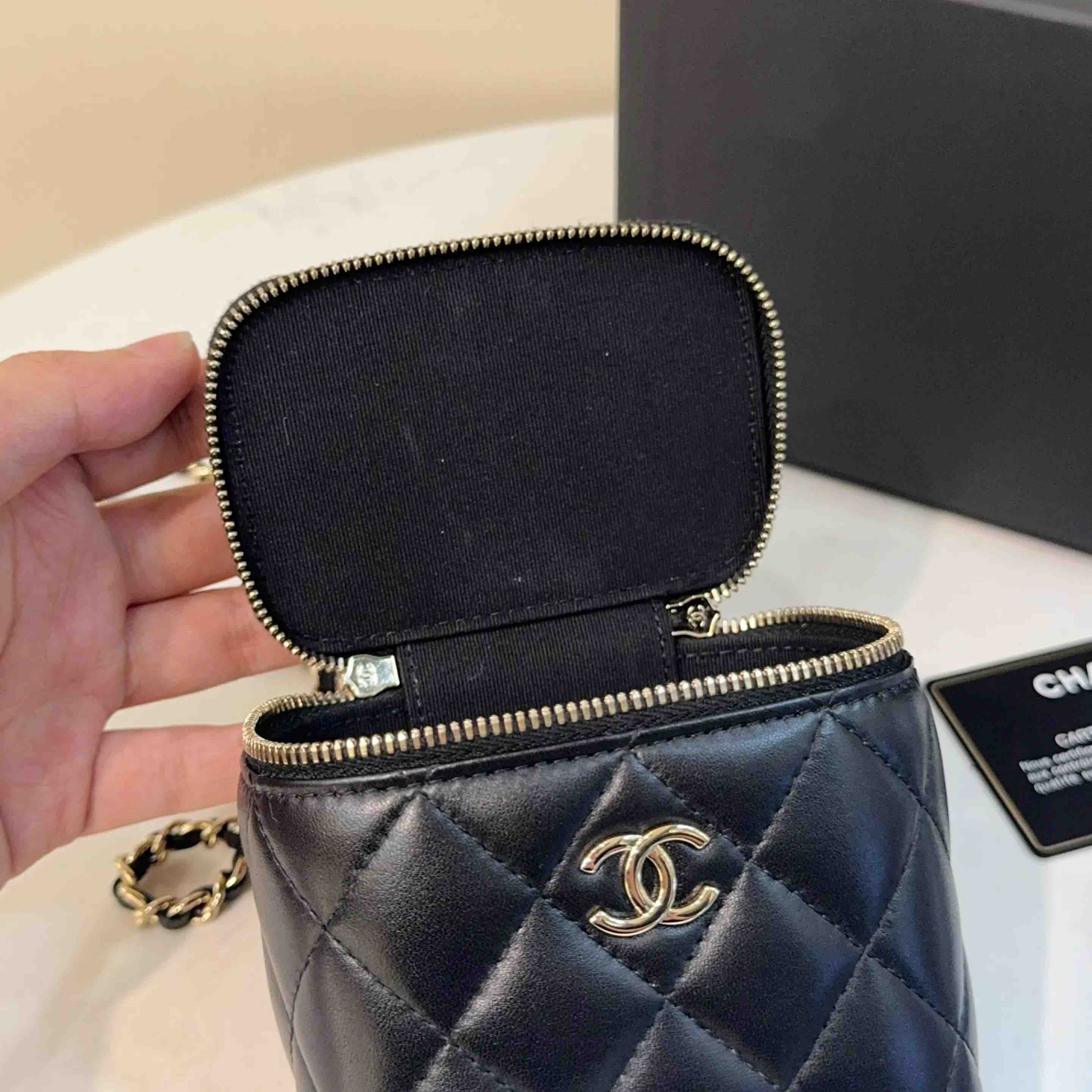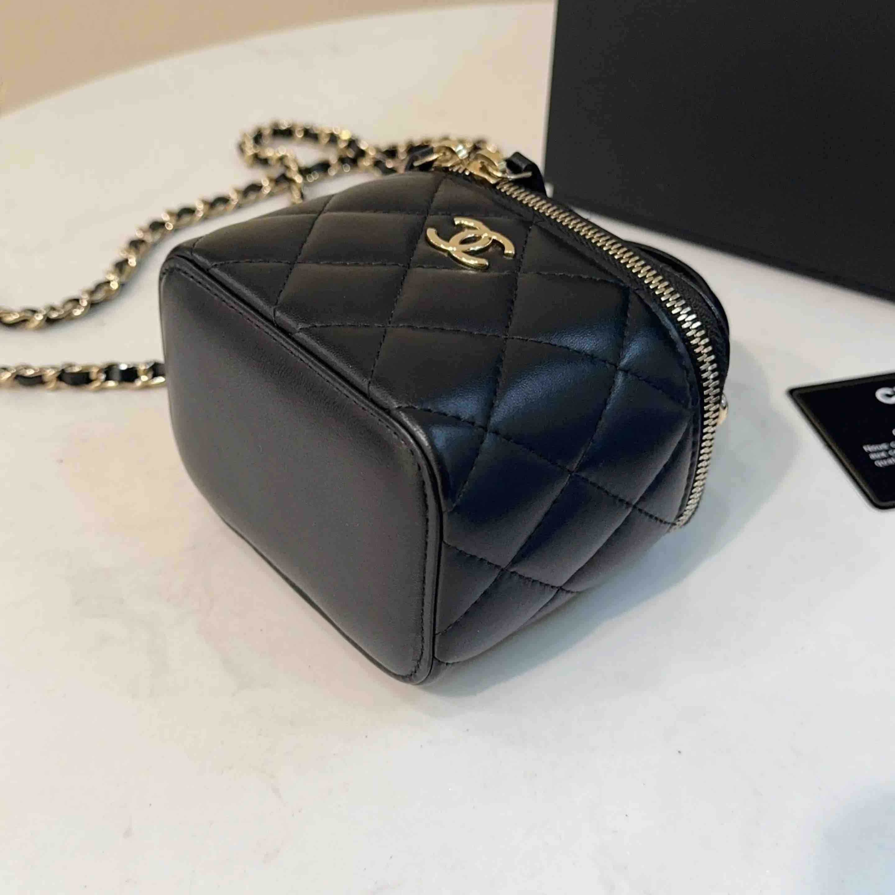 【商品详情】正品二手 CHANEL 21k 手柄 黑金 mini 羊皮 斜挎包🌟98新 10×9 配件:卡 防尘袋 盒子。21年季节限定 超级 mini 可爱🤩