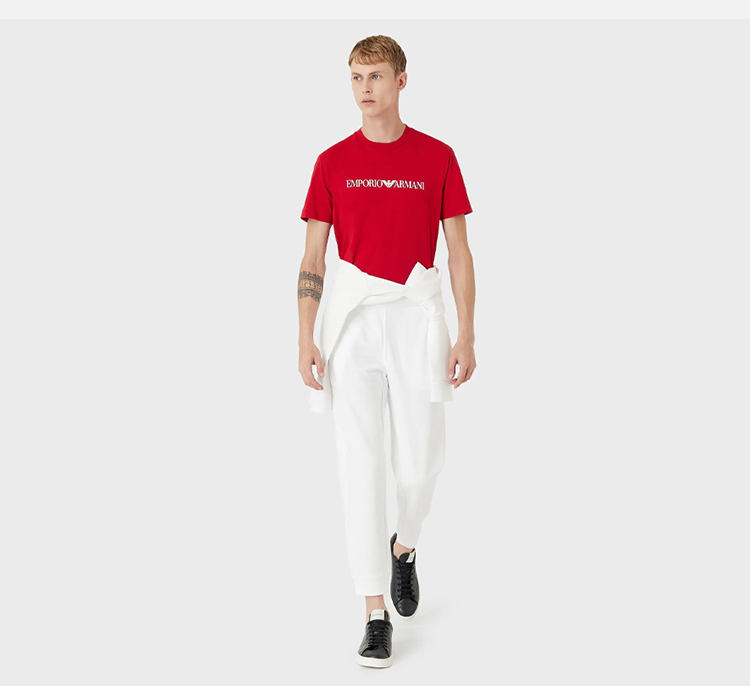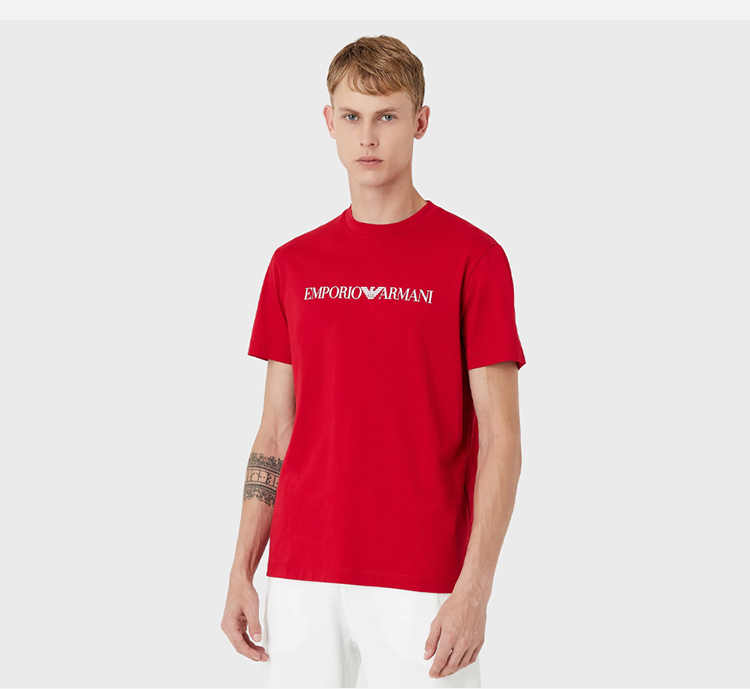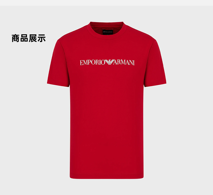 EMPORIO ARMANI 阿玛尼 男士棉质字母徽标印花圆领短袖T恤 红色 8N1TN5 1JPZZ 0343