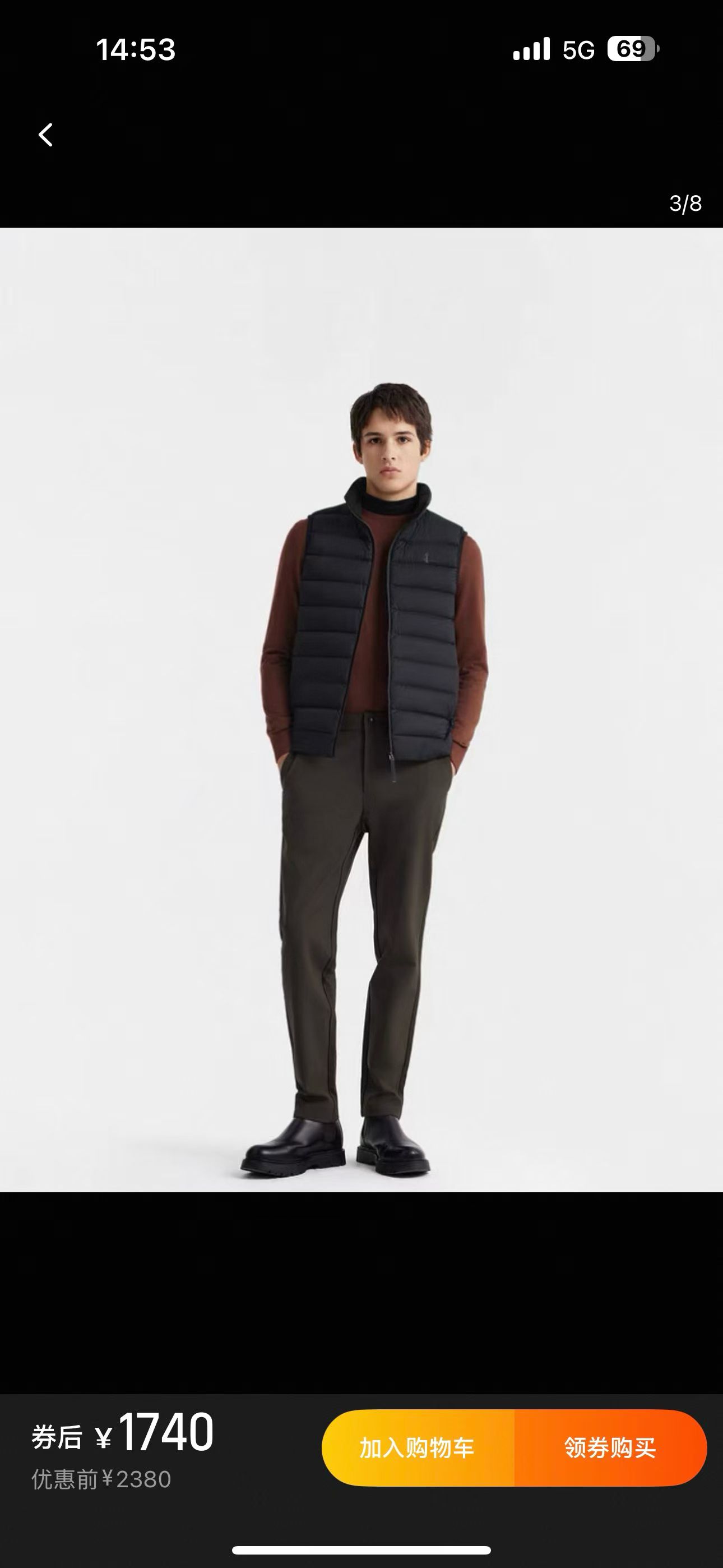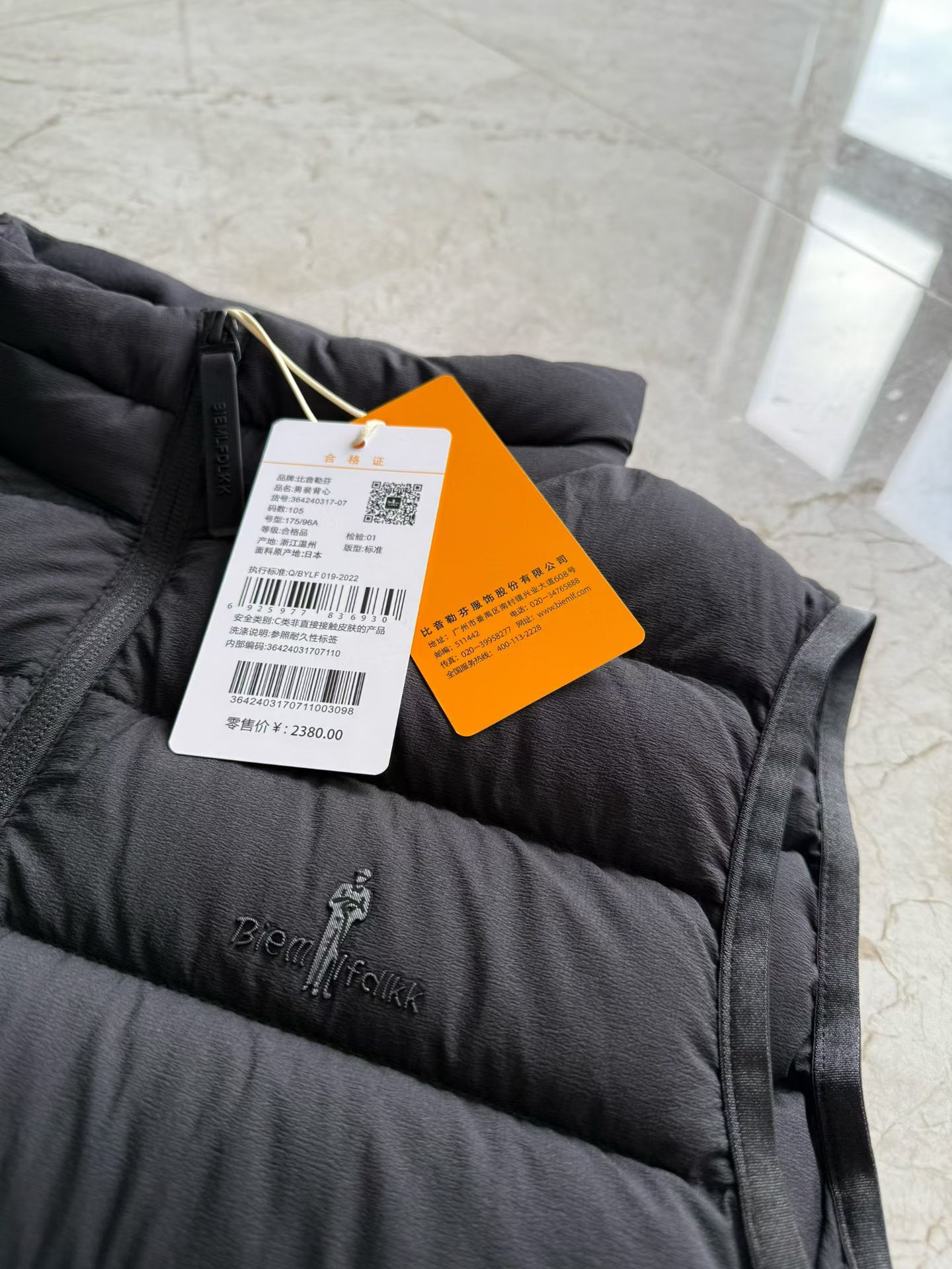 比音新品 四面弹轻弹排骨羽绒马甲,高端轻薄弹力防水材质,尺码100-105-110-115(对应尺寸170-175-180-185)