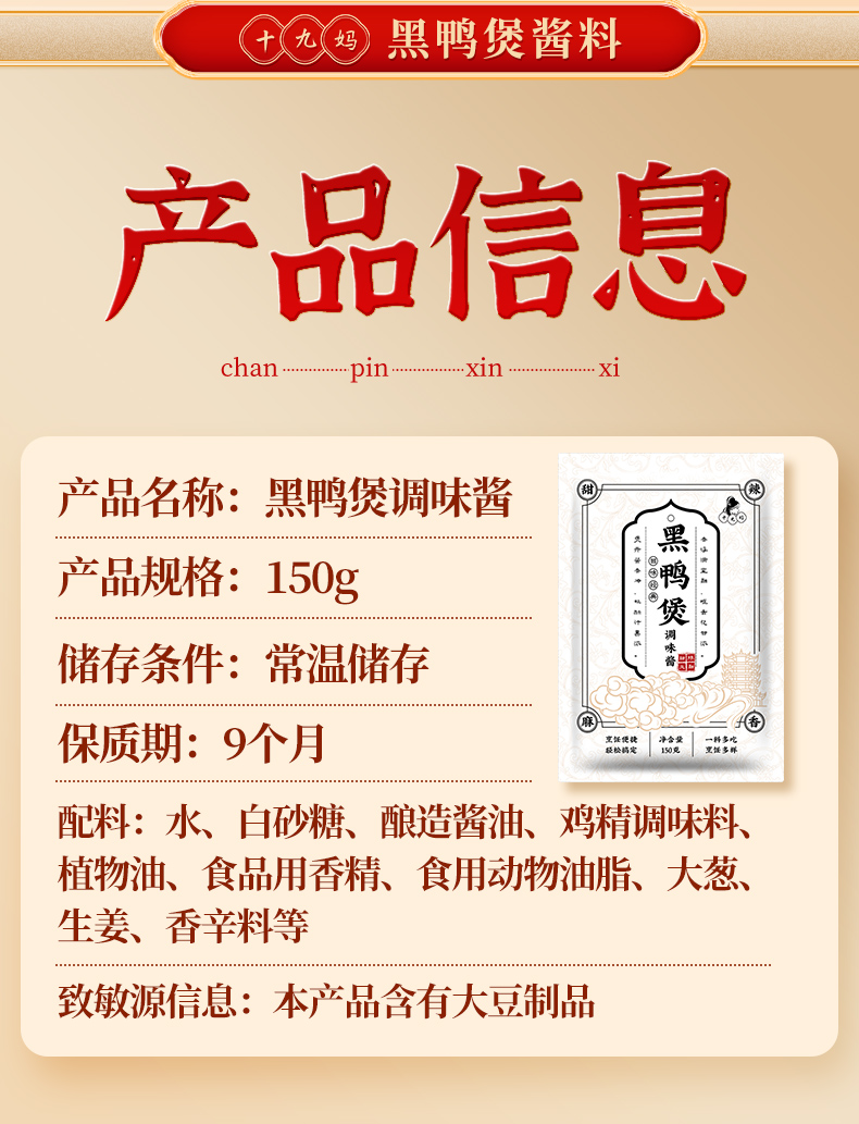 黑鸭煲酱料干锅酱懒人必备家庭煲料150g/袋 麻辣香甜 一酱多用商用