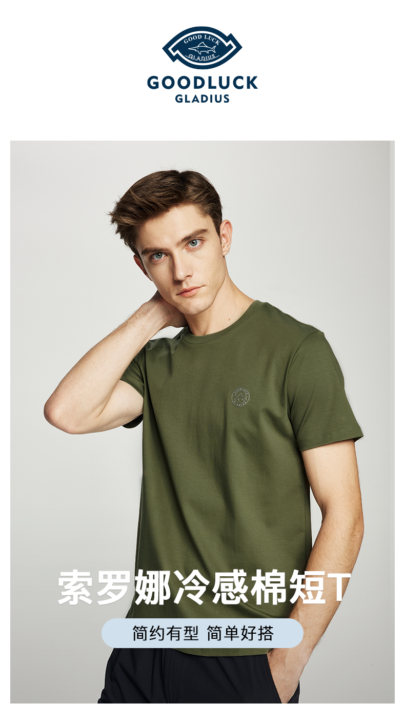 【凉感】德鲨短袖圆领T恤男青年2026夏新款休闲百搭打底衫