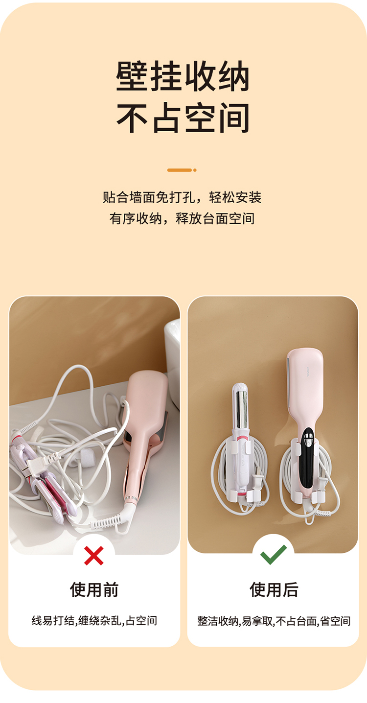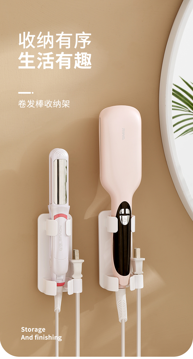 FaSoLa 卷发棒收纳架免打孔卫生间壁挂式熨板支架直发梳电夹板置物架