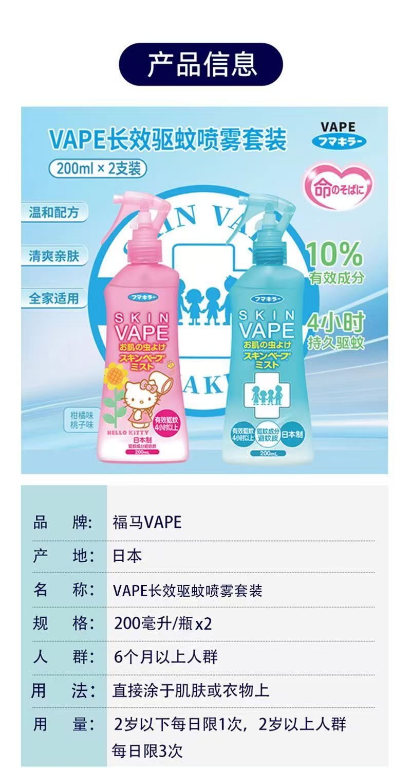 【官方正品】日本vape驱蚊水喷雾 200ml(6月以上适用)
