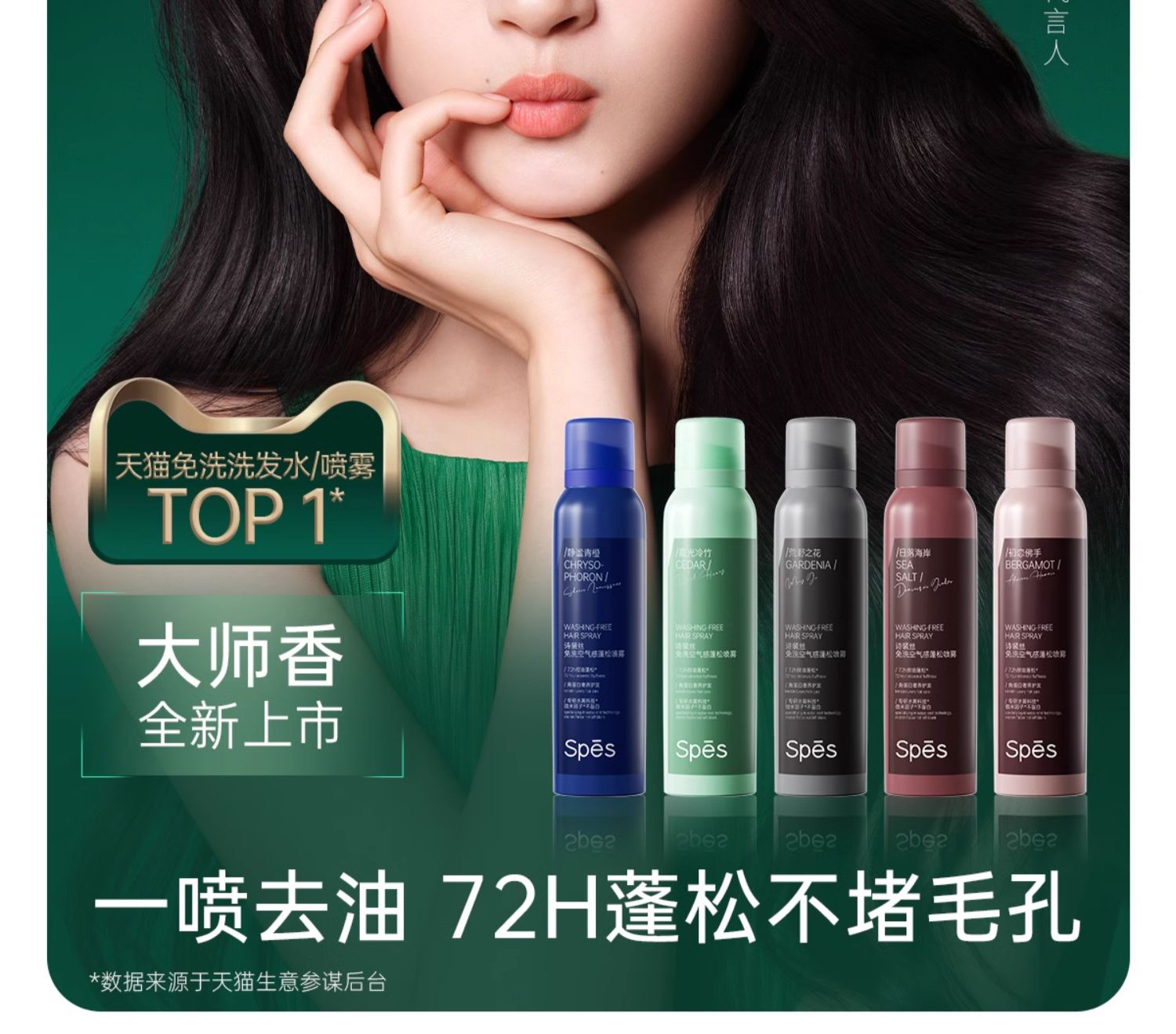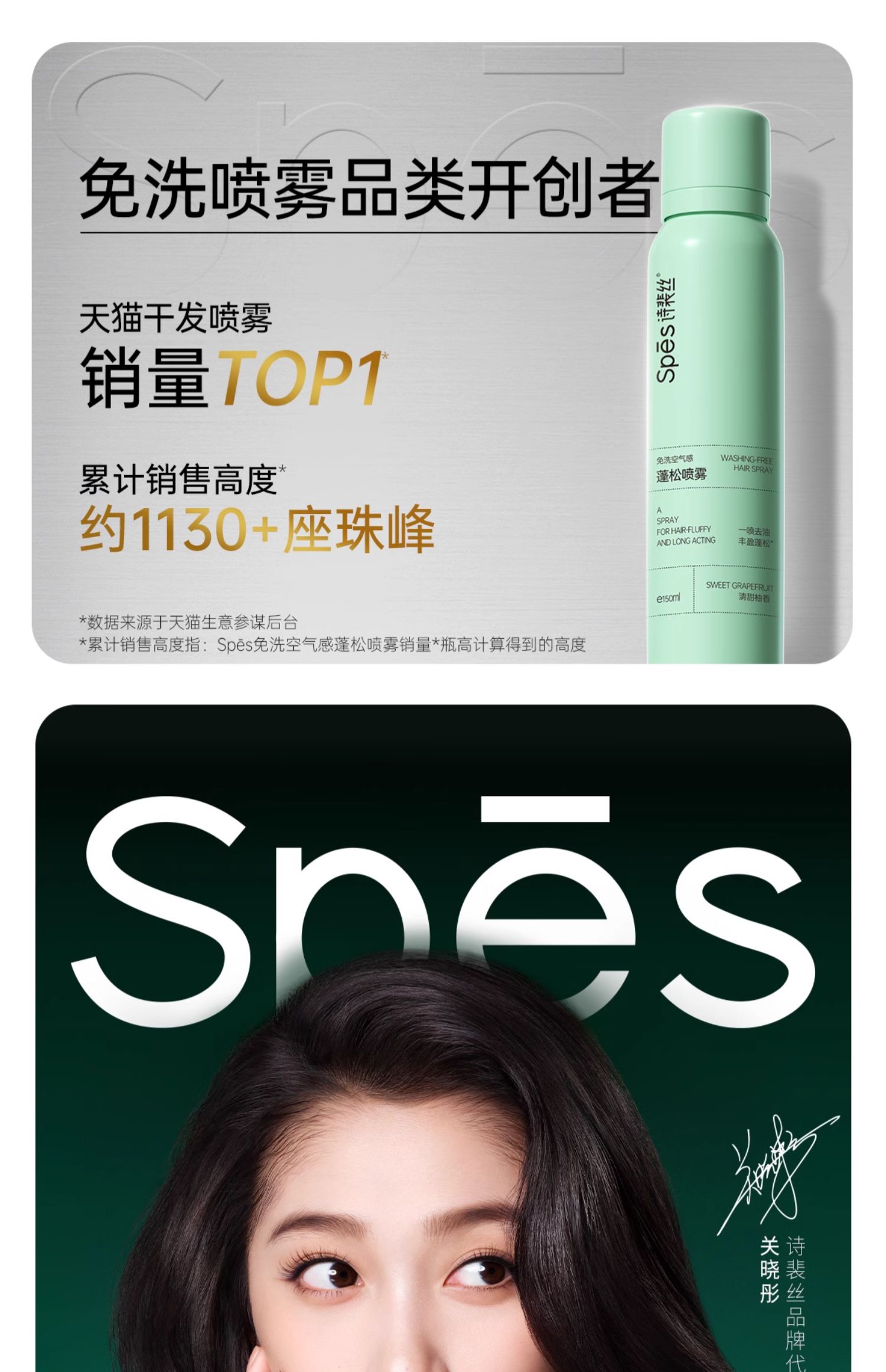 章若楠推荐!Spes免洗蓬松干发喷雾新款大师香氛 头发去油神器蓬蓬粉高颅顶150ml