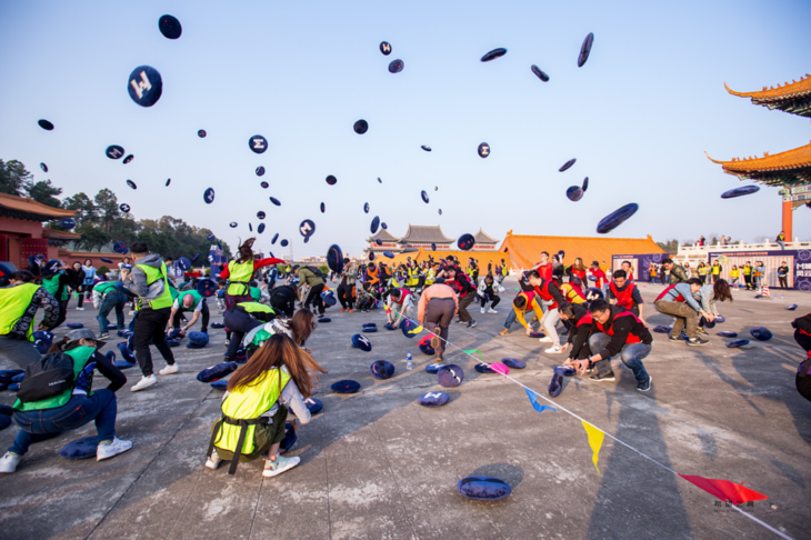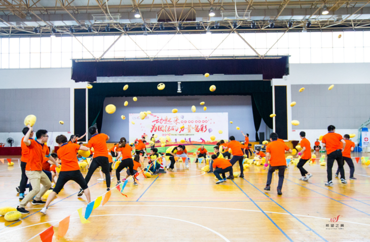 4小组中,各挑选出6人,背对背夹住3个枕头,往返于场地起点与终点2次,枕头掉落的2人需重新从起点处出发。最先到达且枕头掉的少的组胜出。