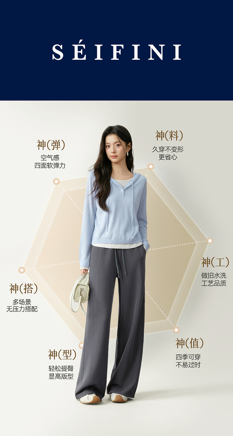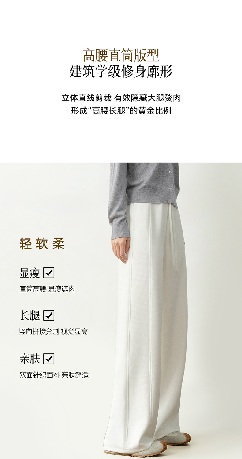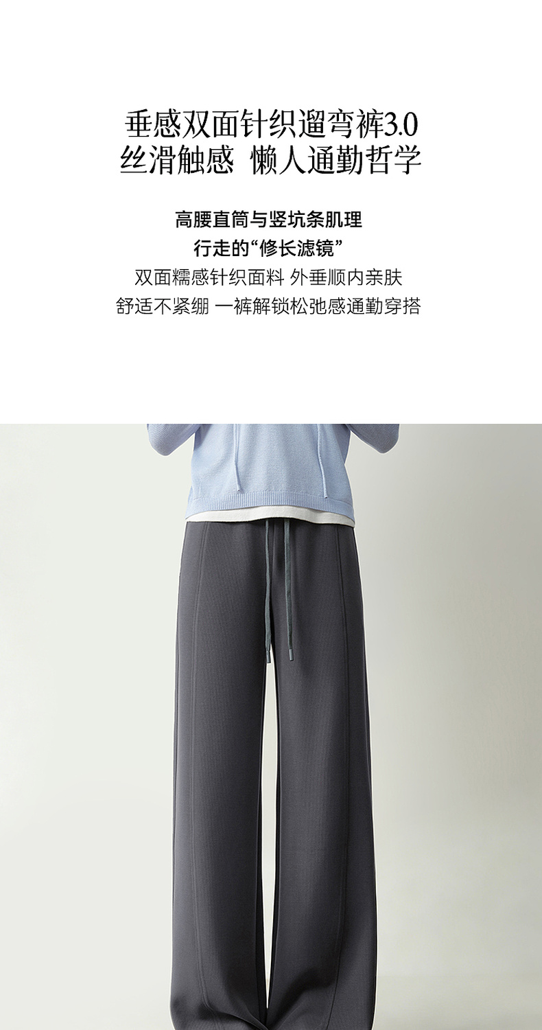 【严选】【遛弯裤】诗凡黎垂感直筒阔腿裤2026春新款显瘦双面针织休闲裤女7H2250181
