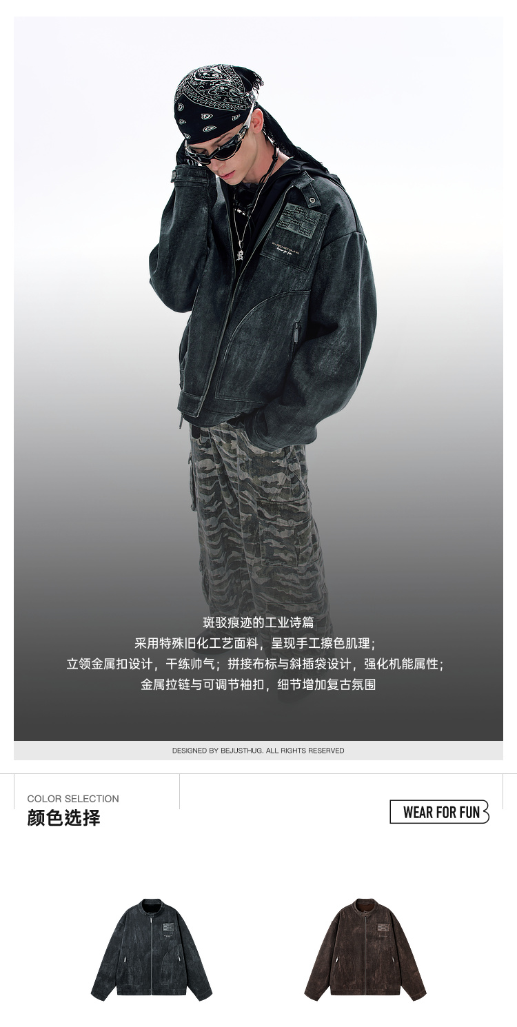 BJHG不计后果棉服男款冬新款棉衣潮牌美式复古重工立领夹克外套女