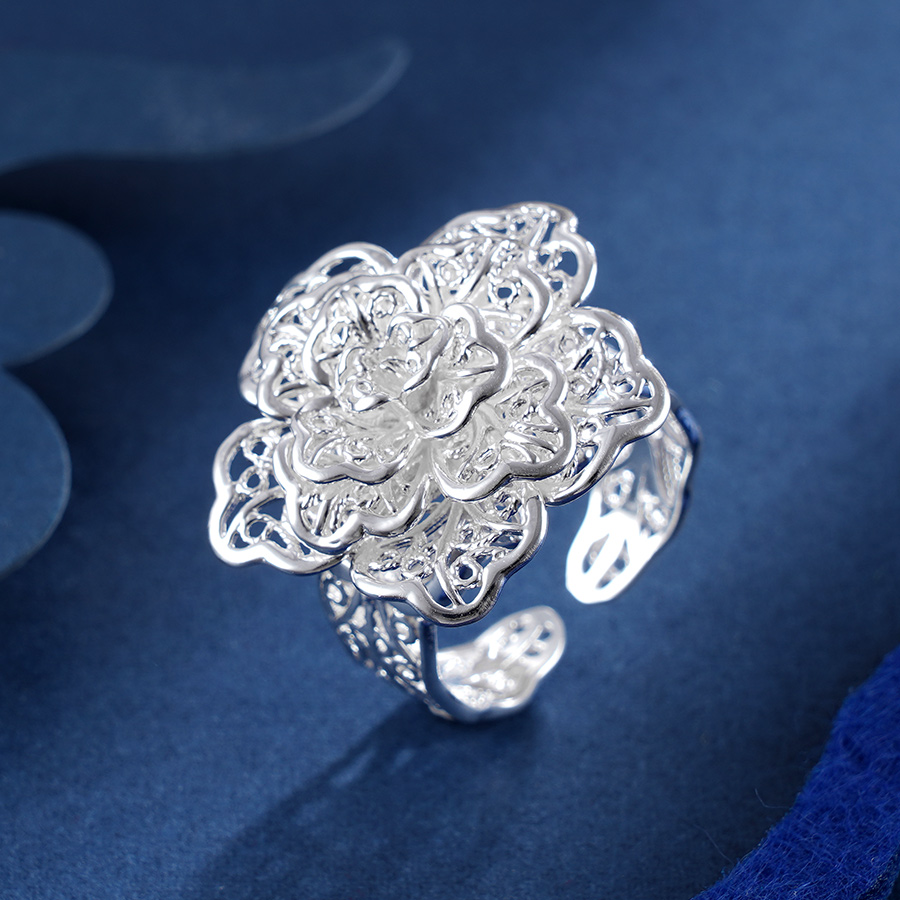 子佩集S990银牡丹戒指【MD11-1】花丝2401