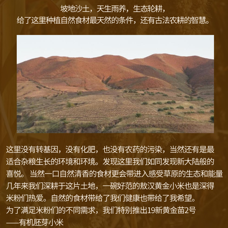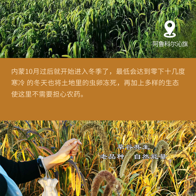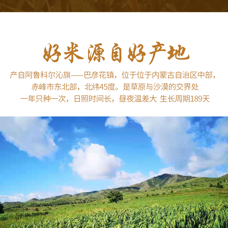 1、这款小米来自世界小米的发源地——内蒙赤峰阿鲁科尔沁旗,在草原与沙漠交界处;
