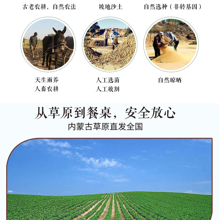 5、坡地沙土生态种植,人工除草,人工收割,拒绝除草剂,坚决不泡碱水, 一年只种一季;