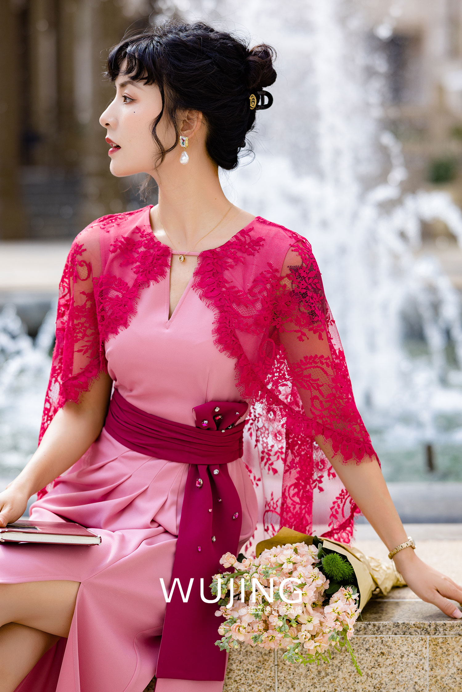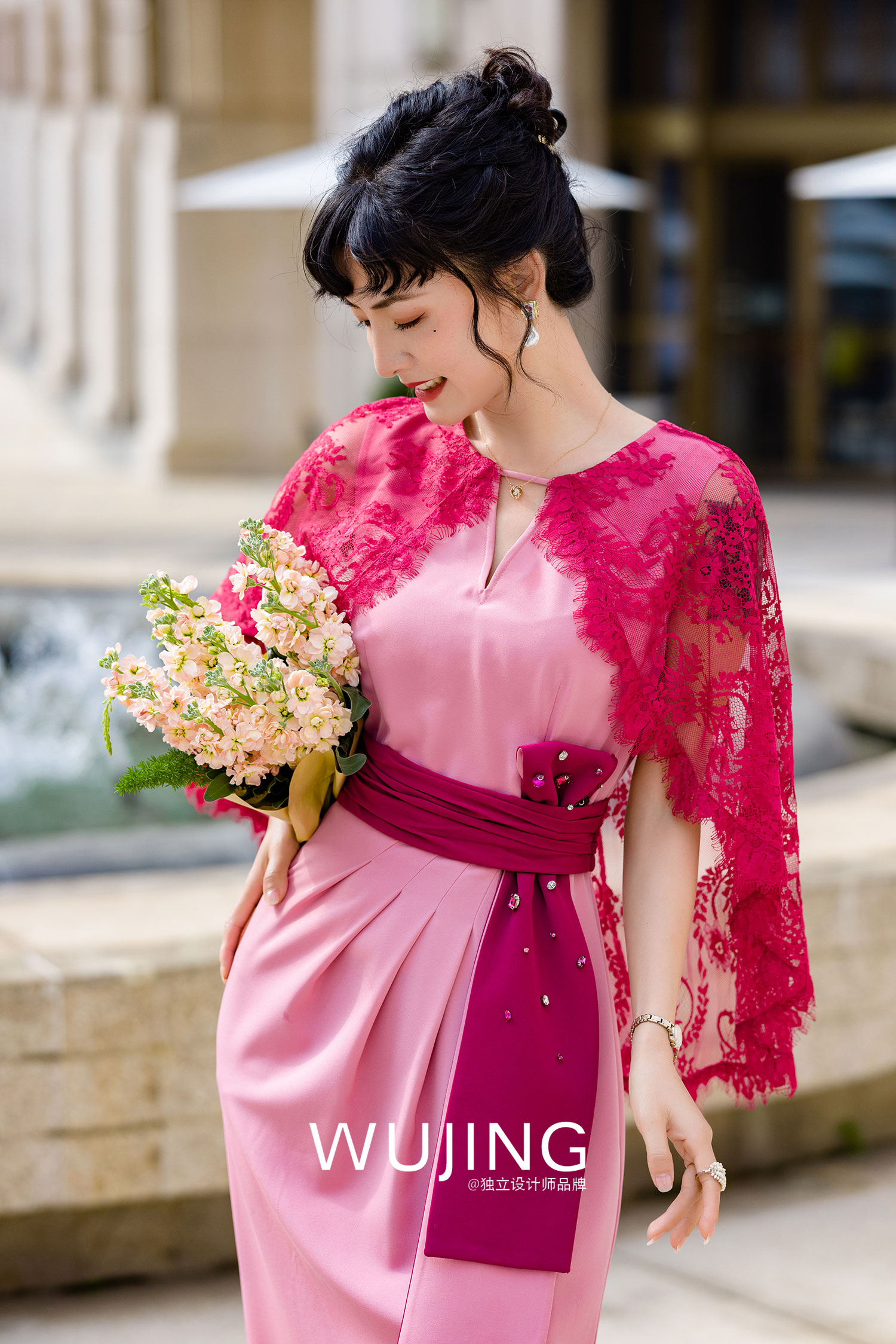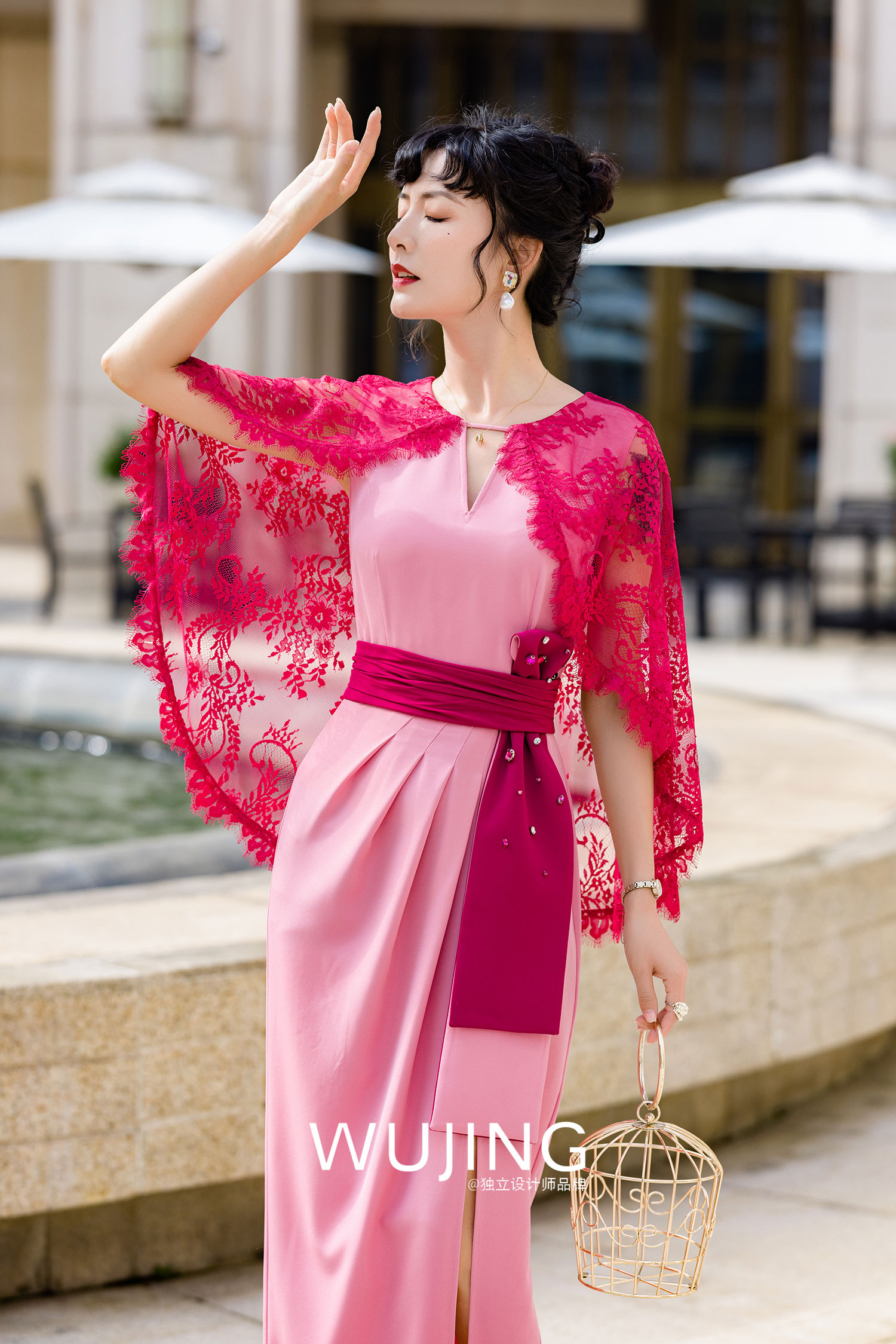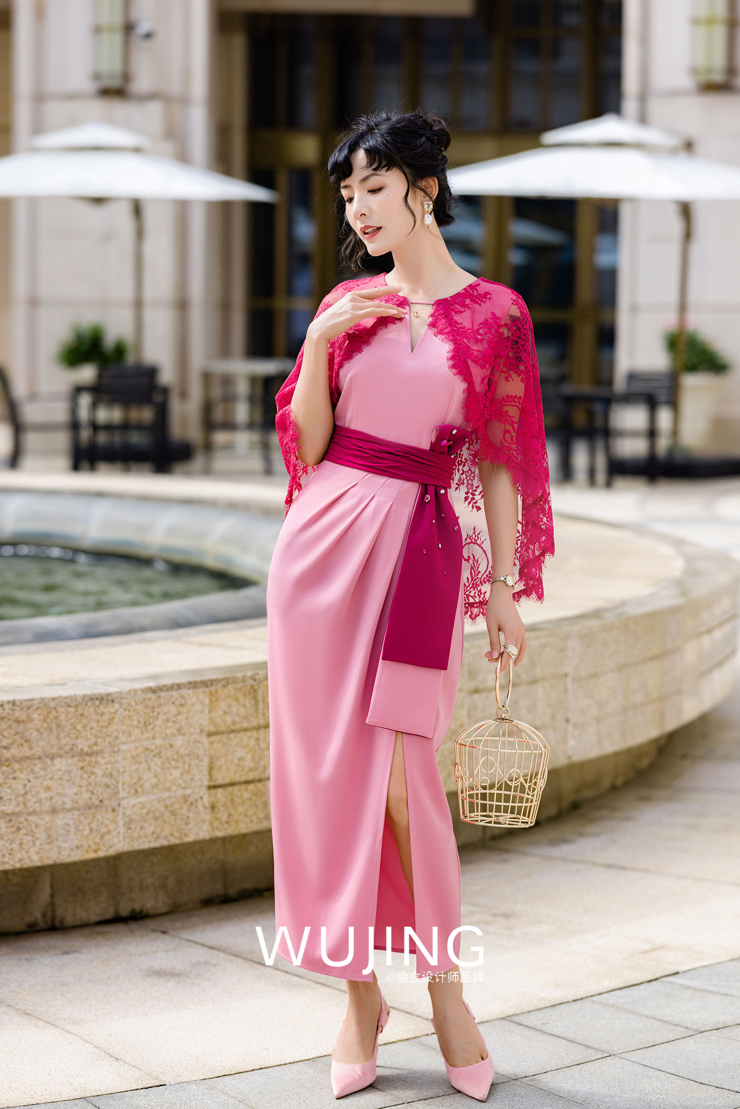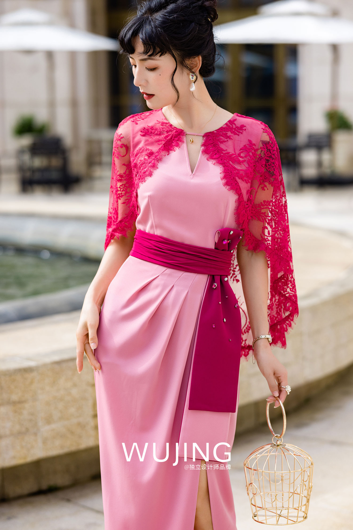 3022041 粉黛胭脂 藕粉色连衣裙 雾境