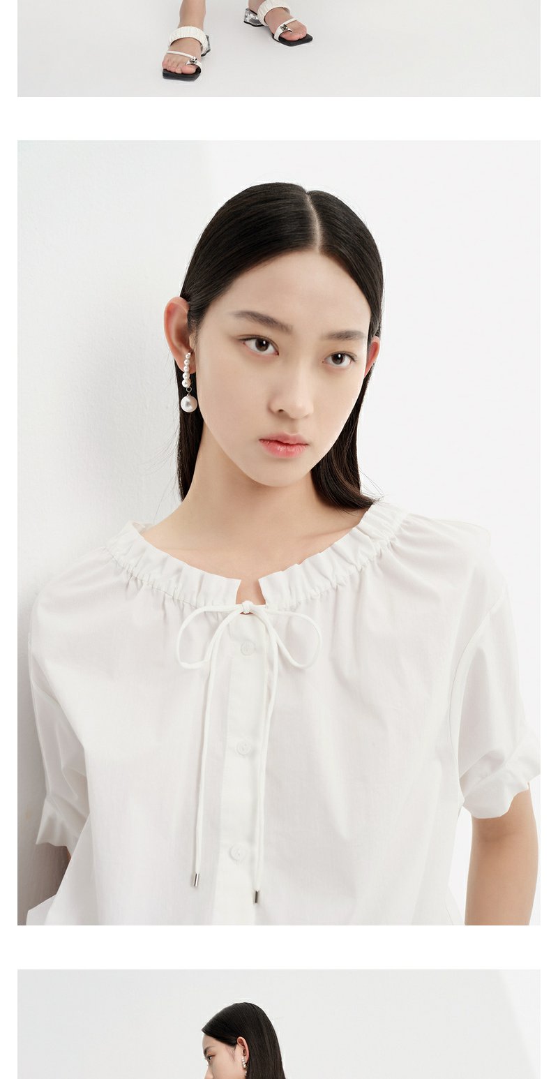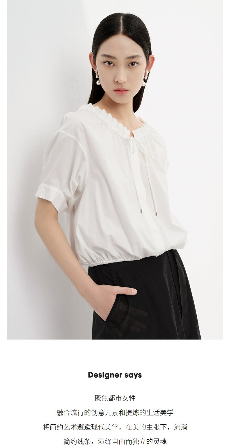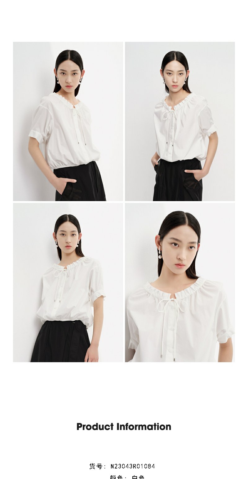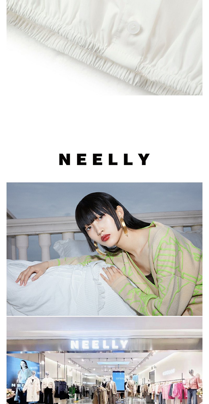 NEELLY纳俪商场同款立领抽绳衬衫女宽松休闲短袖上衣夏季新款简约N23043R01084