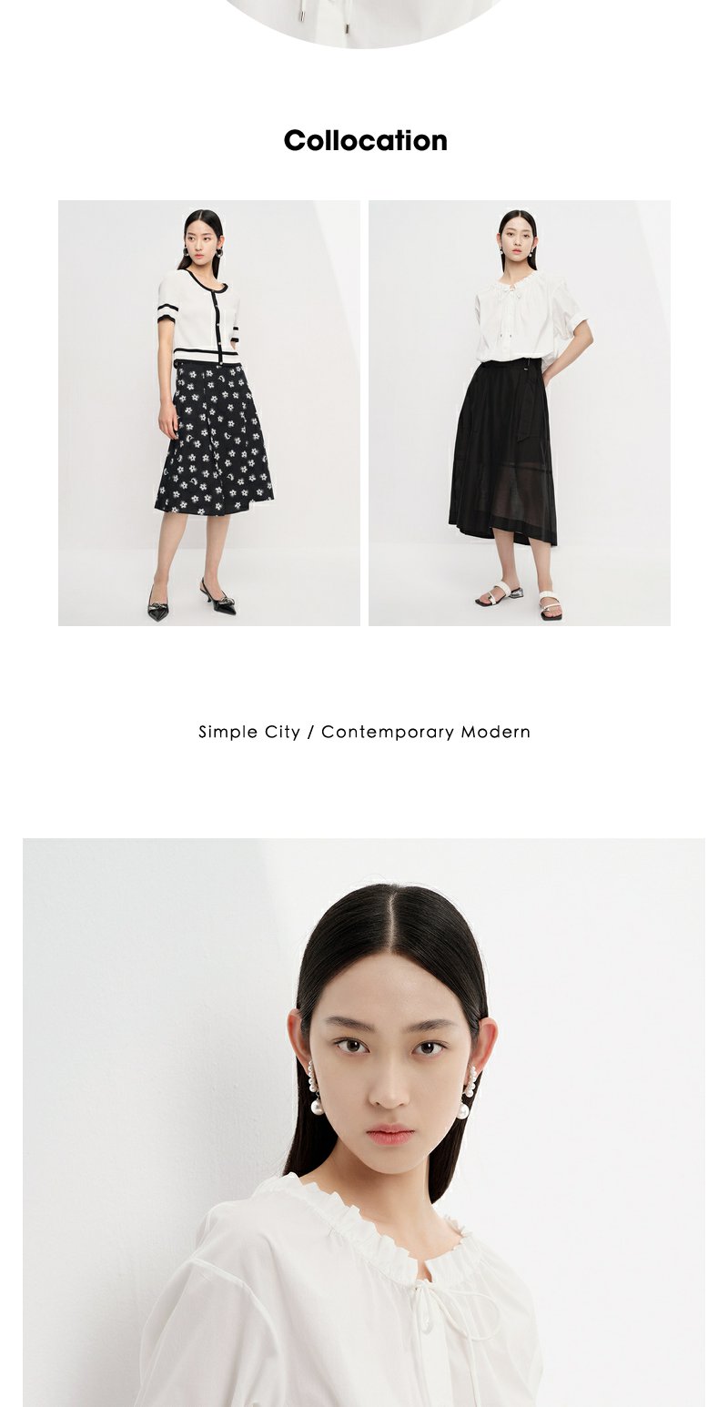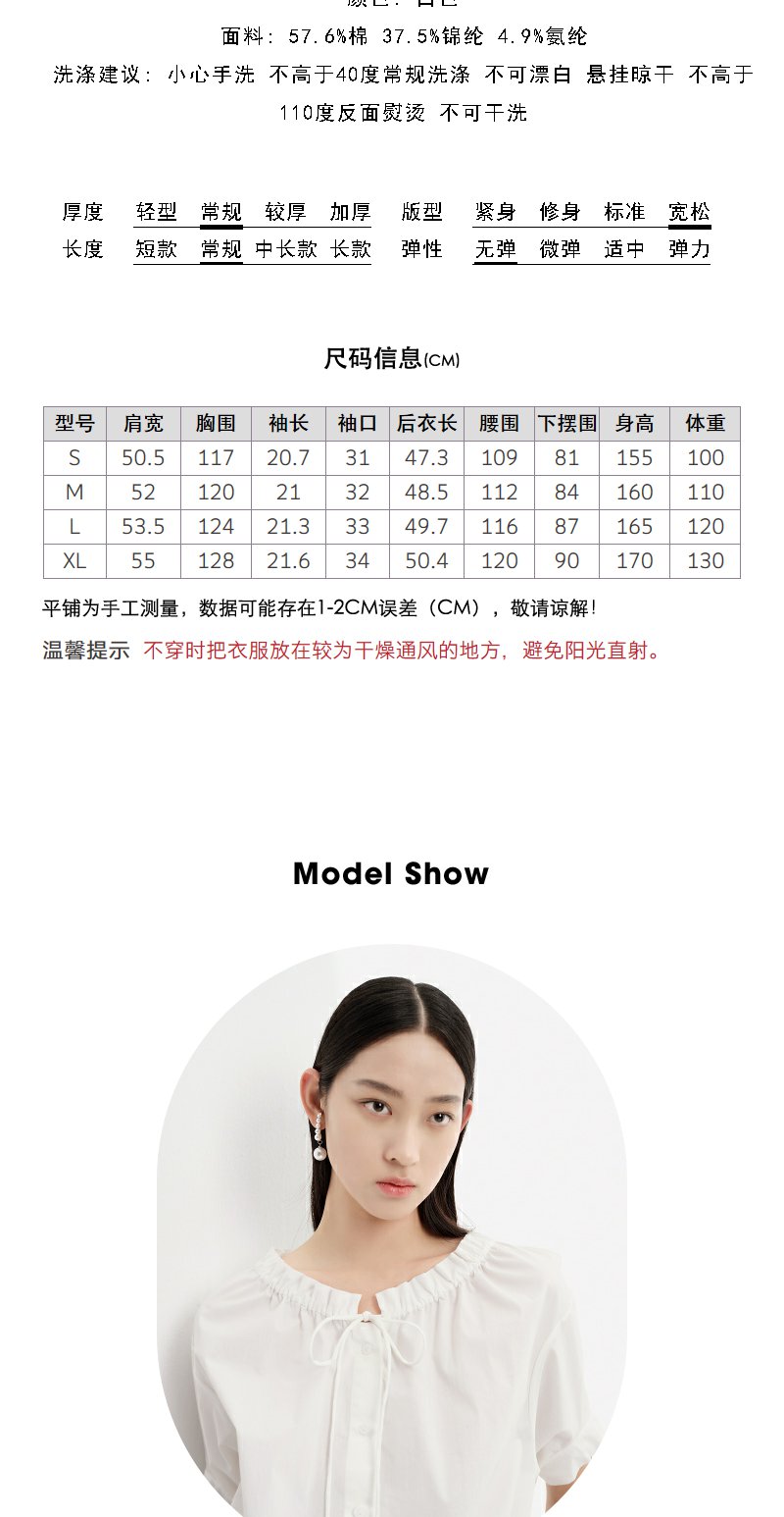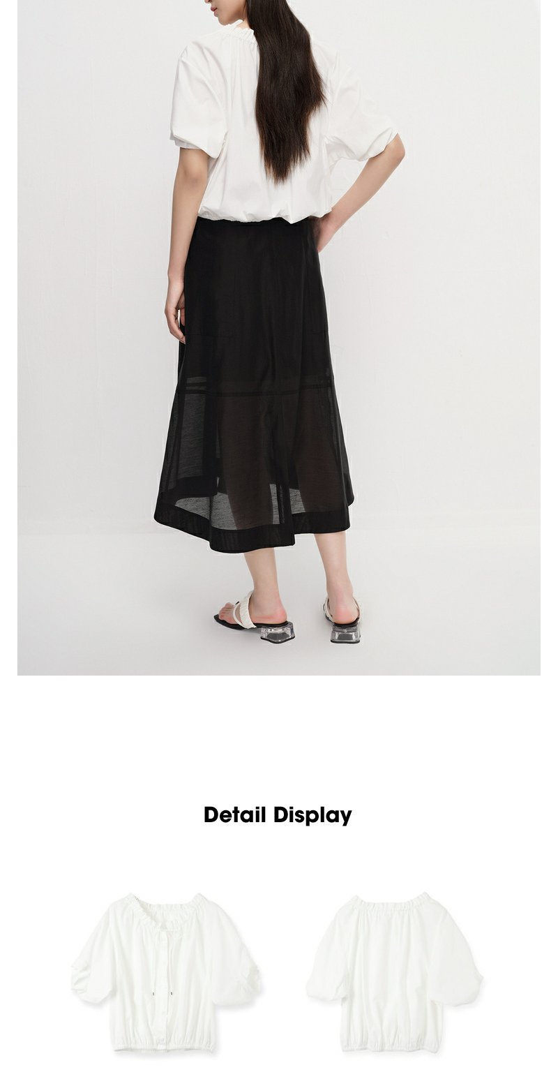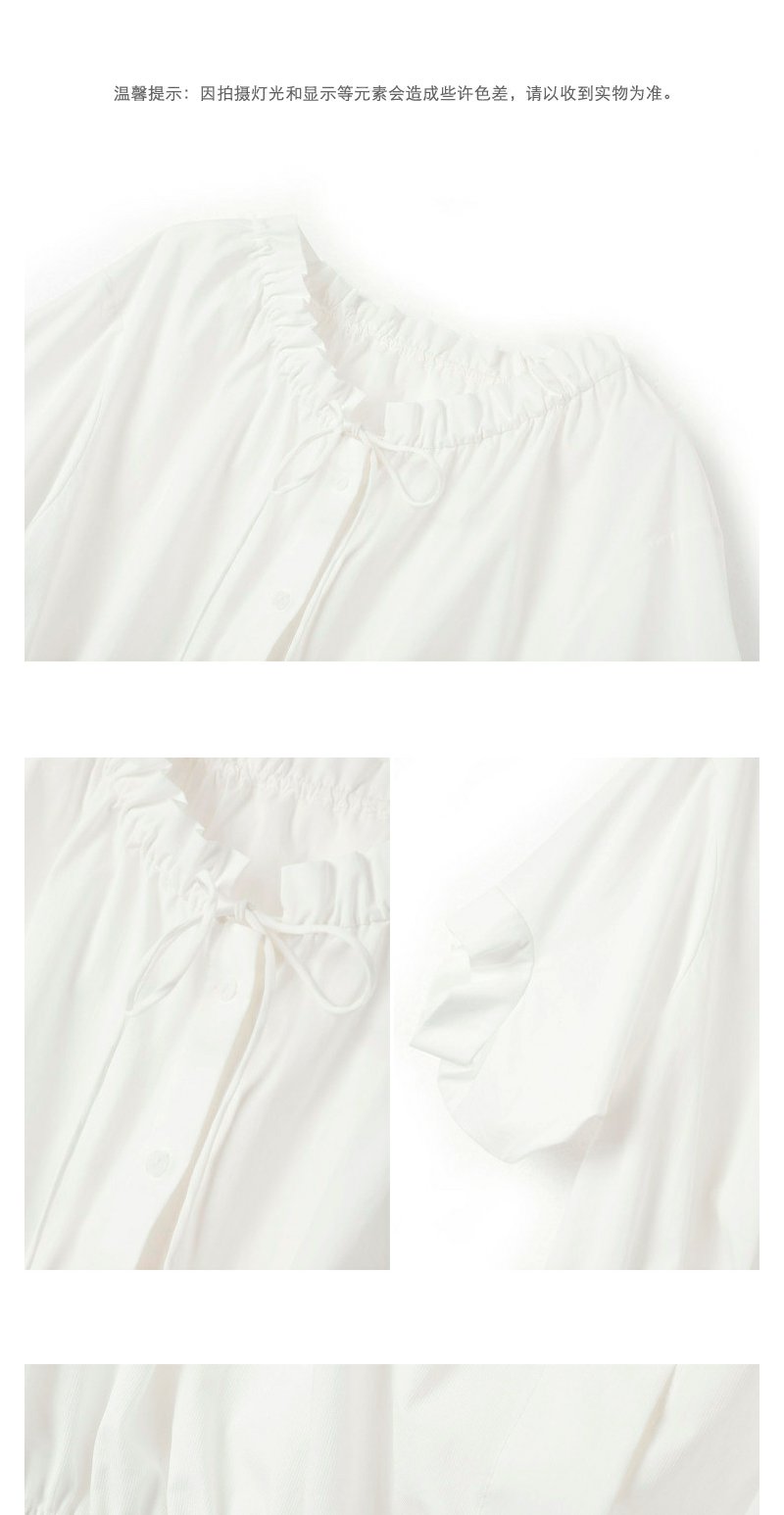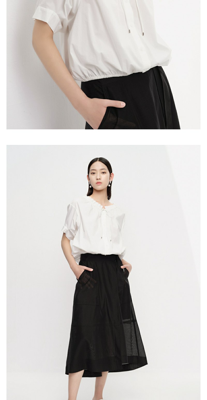 NEELLY纳俪商场同款立领抽绳衬衫女宽松休闲短袖上衣夏季新款简约N23043R01084